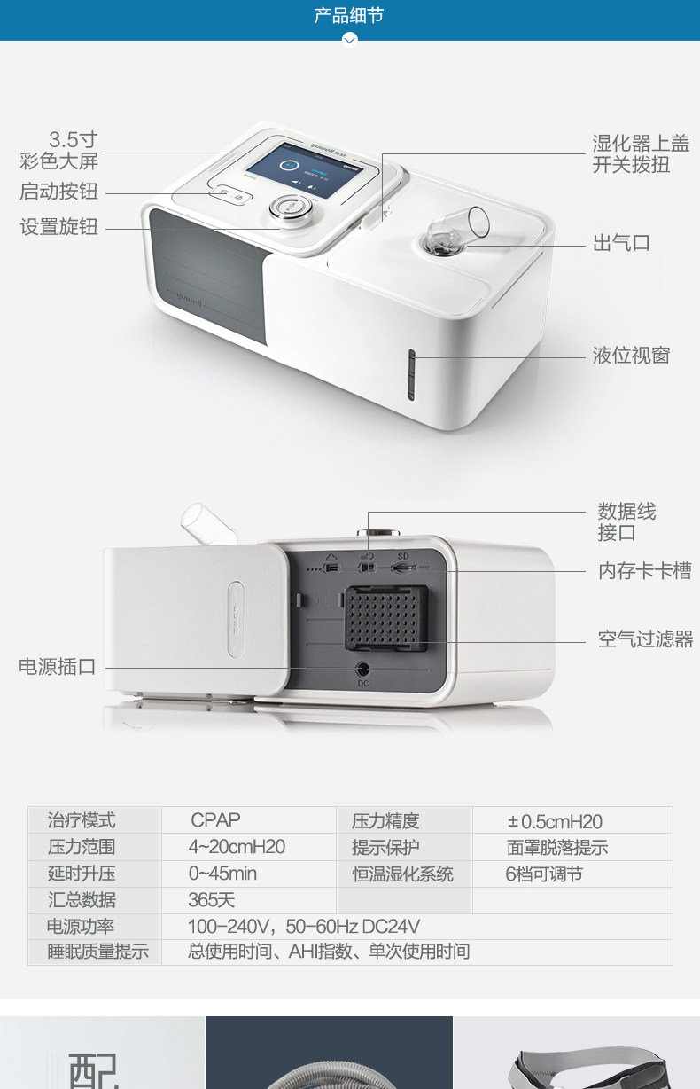 鱼跃 YH-360 Вентилятор CPAP Home Medical 560 Положительное давление одноуровневое полное полуавтоматическое APAP Stop String Wat Wat