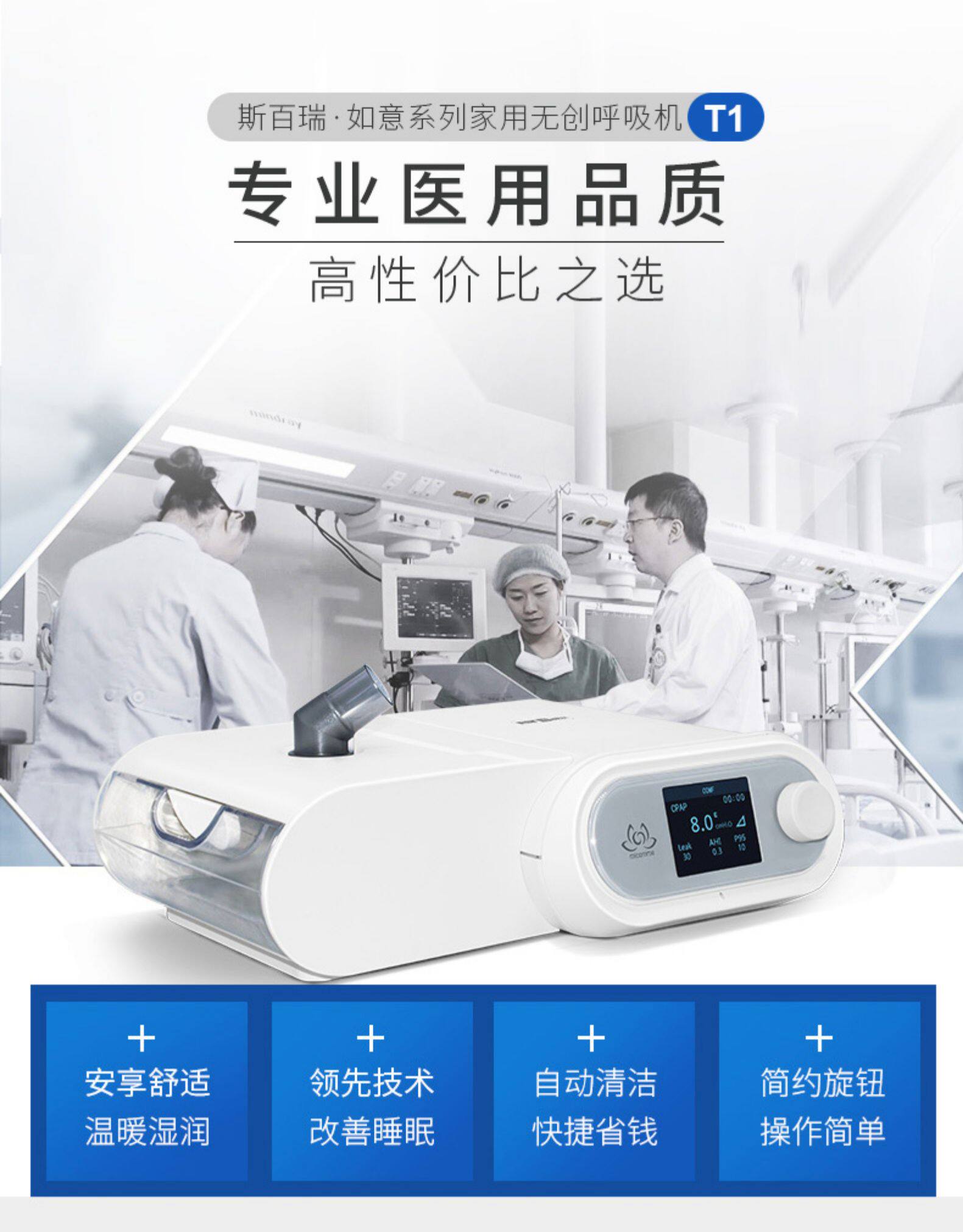 斯百瑞 Не -инвазивное вентилятор с двойным горизонтальным дыхательным дыхательным респиратором.