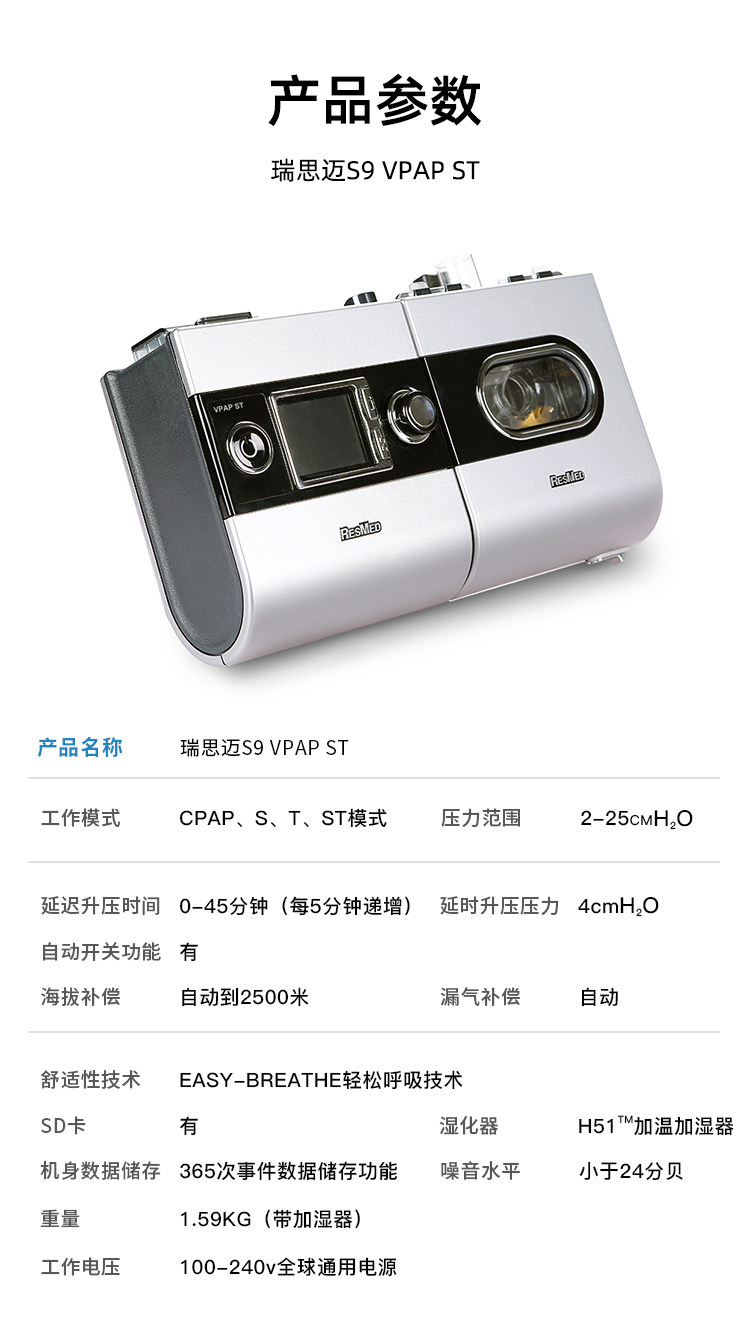 Респираторный респиратор S9 VPAP ST Двойной горизонтальный вентилятор медленно заблокированные легочные выбросы на домашний диоксид углерода