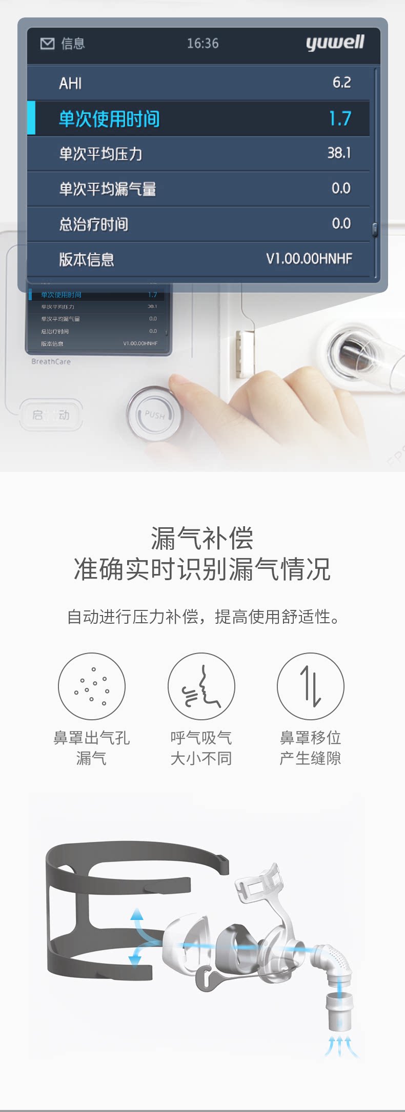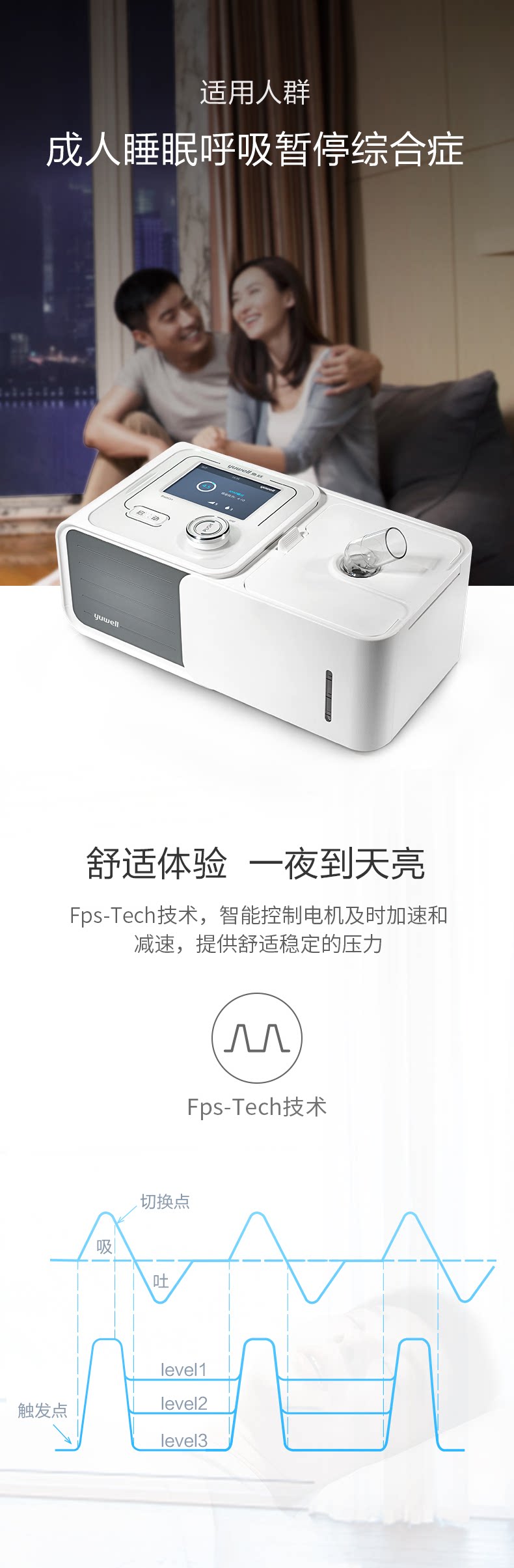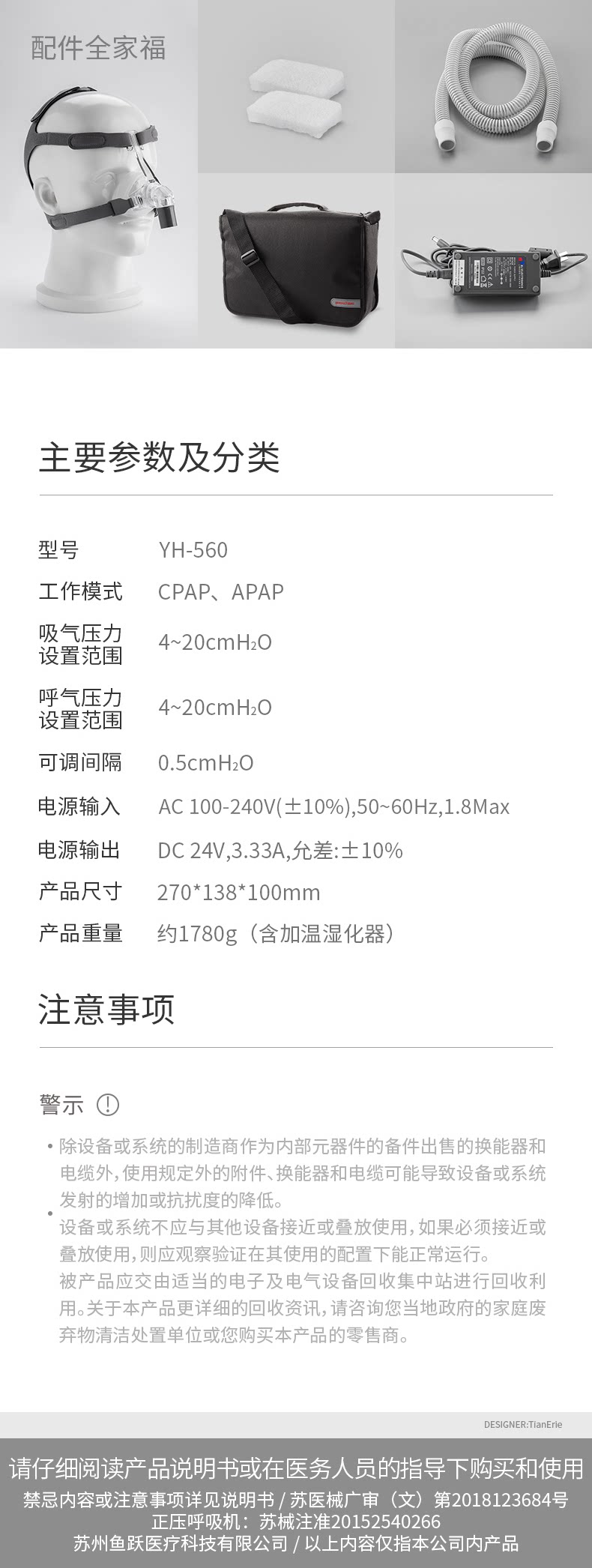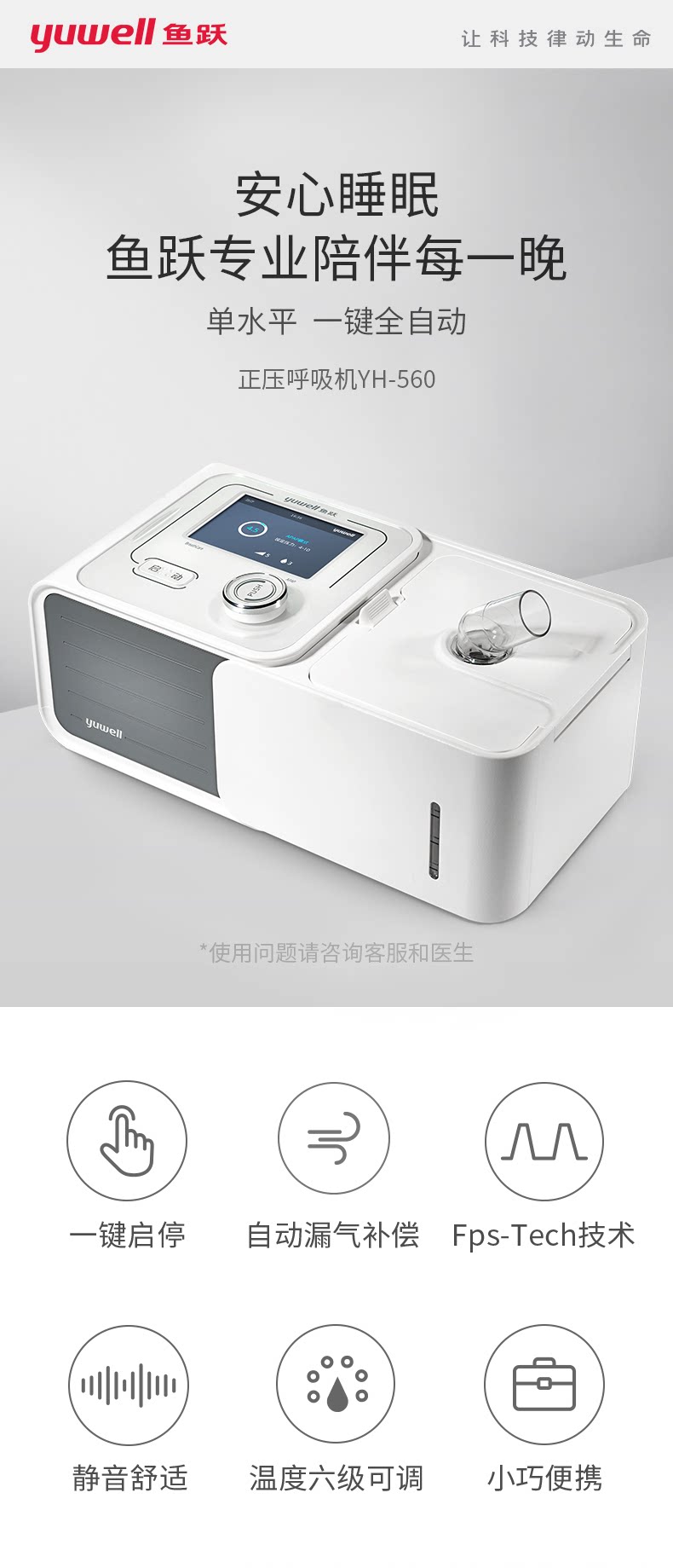 鱼跃 Медицинский полностью автоматический одноуровневый вентилятор YH-560 храп домашний храп неинвазивный сна.