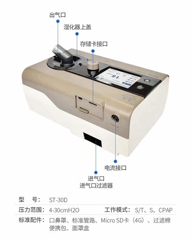 Staprui ST-30D Неинвазивный вентилятор домохозяйств легочный эмфизема Эмфизема Пневмония медленно блокировала легочные пожилые люди