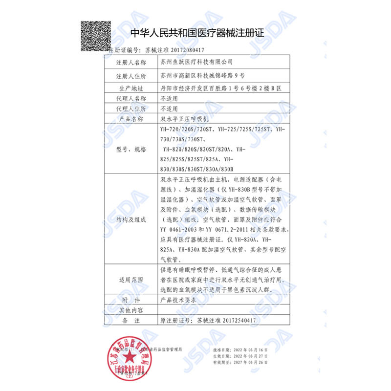 Fish Yue Dual -Level Вентилятор YH720 Медицинский дом медленно заблокированный легочный эмфизема неинвазивный синдром дыхательной подвески