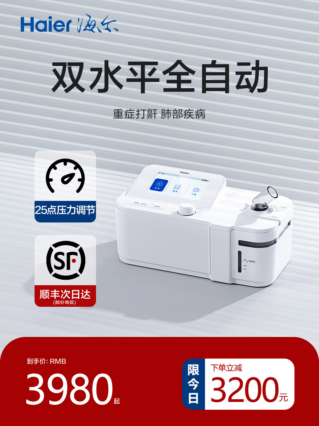 Haier's Home Videntator Ong и двухуровневый полностью автоматический храп, старика спит, храни, специальное неинвазивное храп