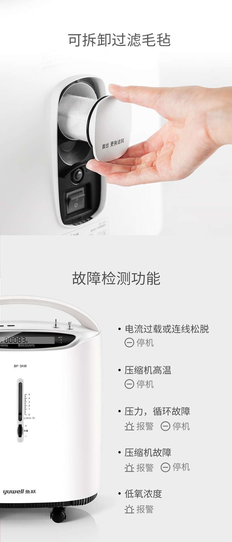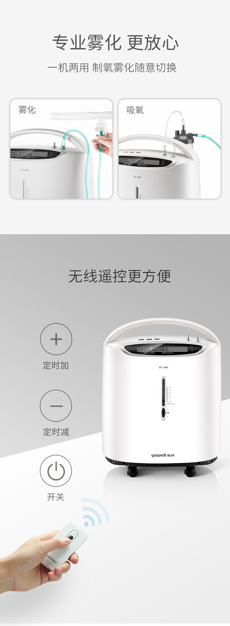 鱼跃 Кислородная медицинская 3 -литровая 3 -литровая 3 -литровая кислородная машина с атомированным небольшим портативным домом пожилой пожилой