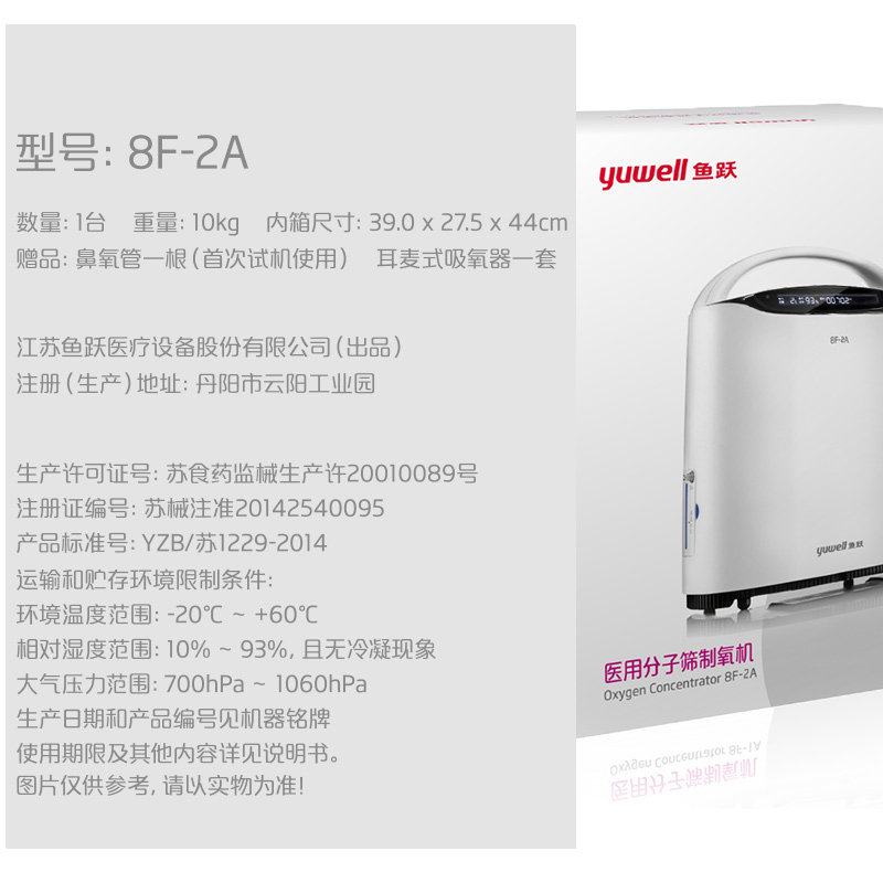 鱼跃 Домохозяйство для изготовления кислорода 8F-1A поглощение кислорода Старое поглощение кислорода Домохозяйство Медицинское медицинское поглотитель 1L кислорода кислорода