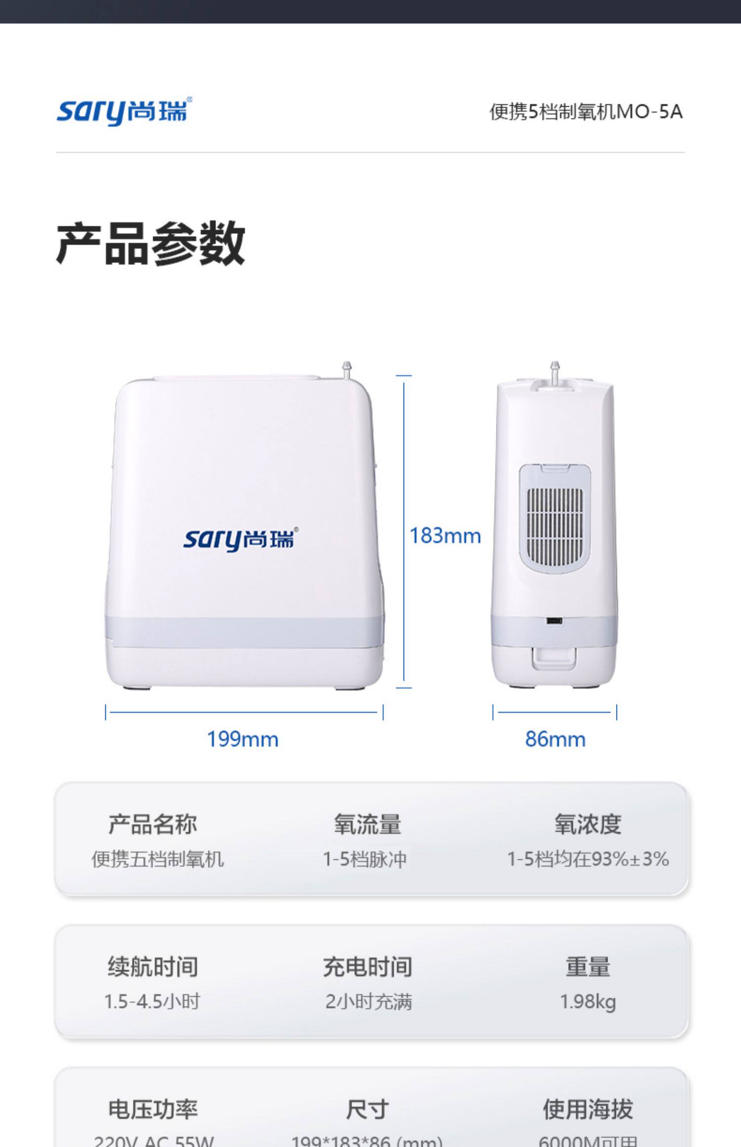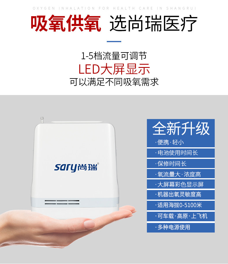 Немецкая марка Shangrui Medical Architecture 5 портативная кислородная машинка для машины с портативной машиной для производства малого кислорода пожилые люди пожилой кислород.