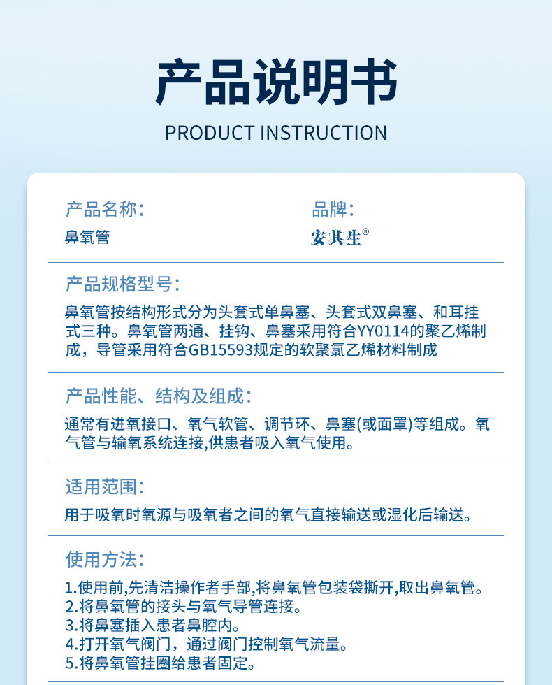 Медицинская носовая кислородная трубка использует поглощение кислорода и кислород, нос -шланг с кислородной трубой удлиняется одновременно