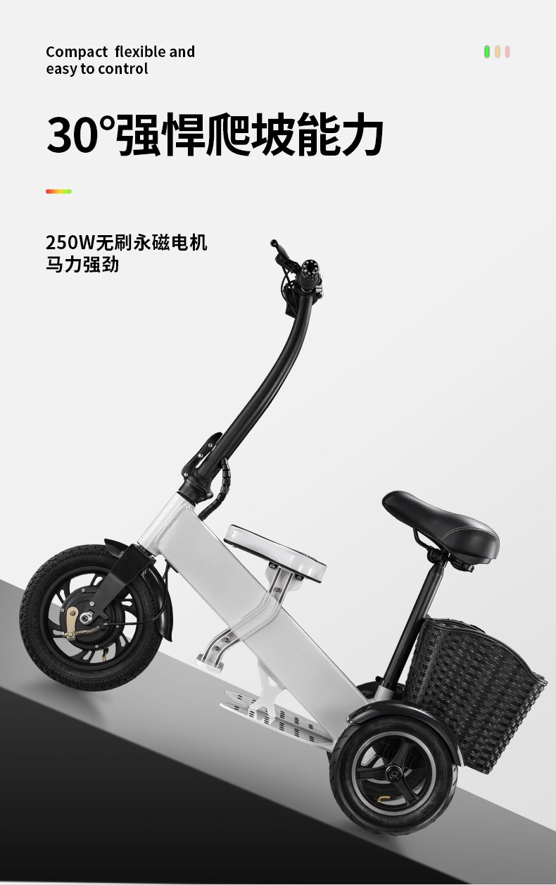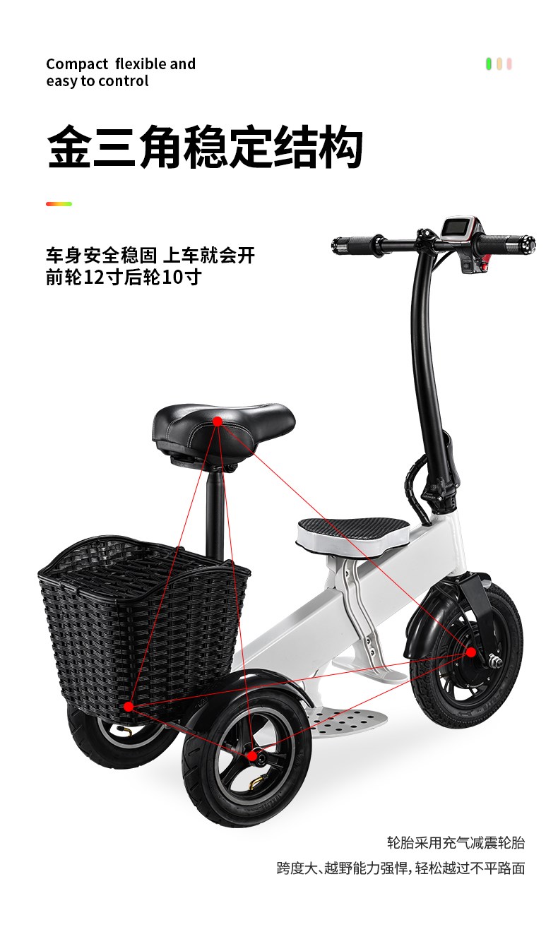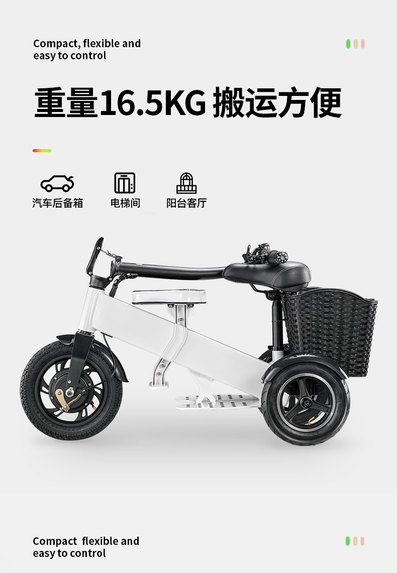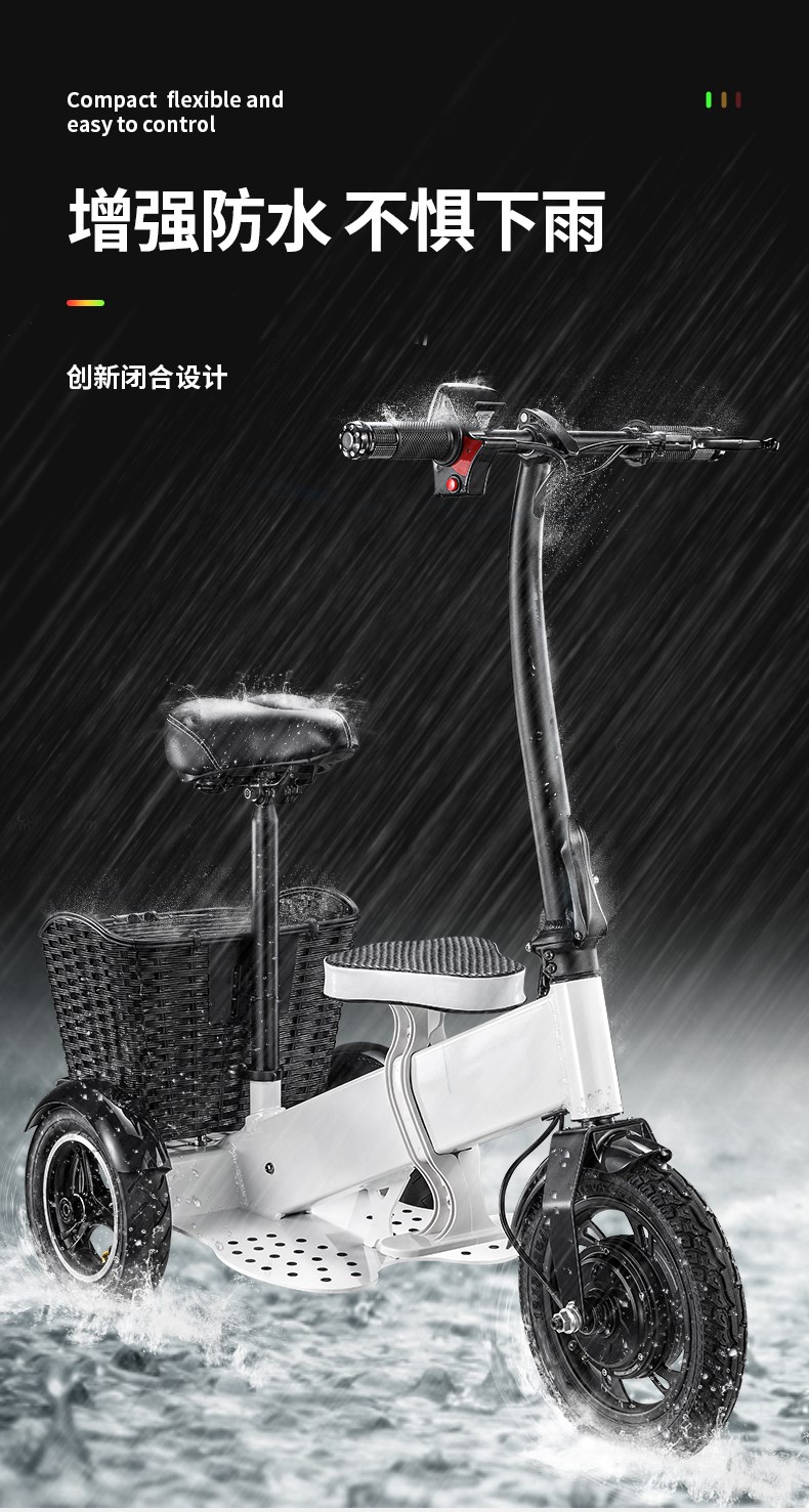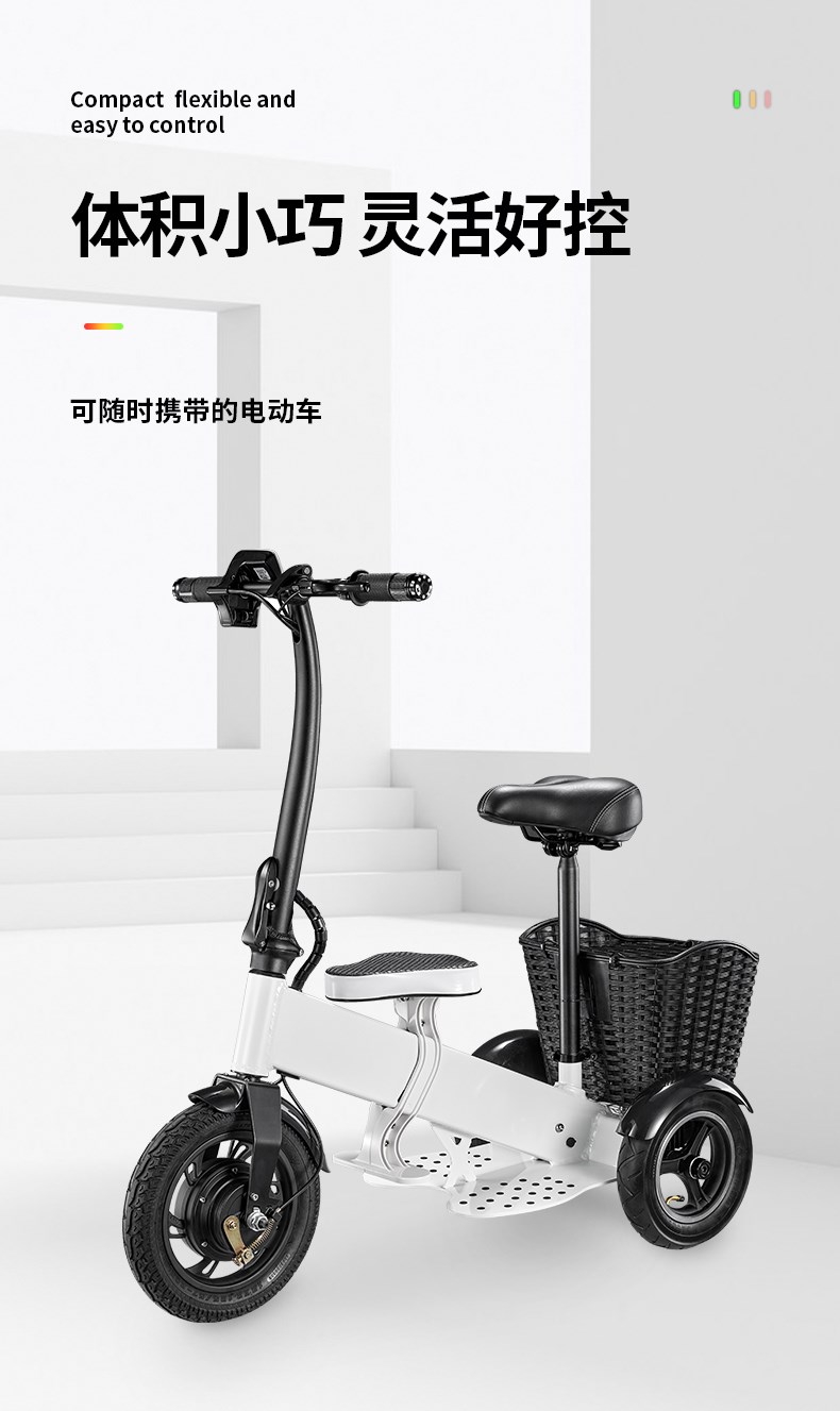 Электрический маленький трехколесный велосипед, складные ходунки подходит для мужчин и женщин для пожилых людей для домашнего использования, семейный стиль