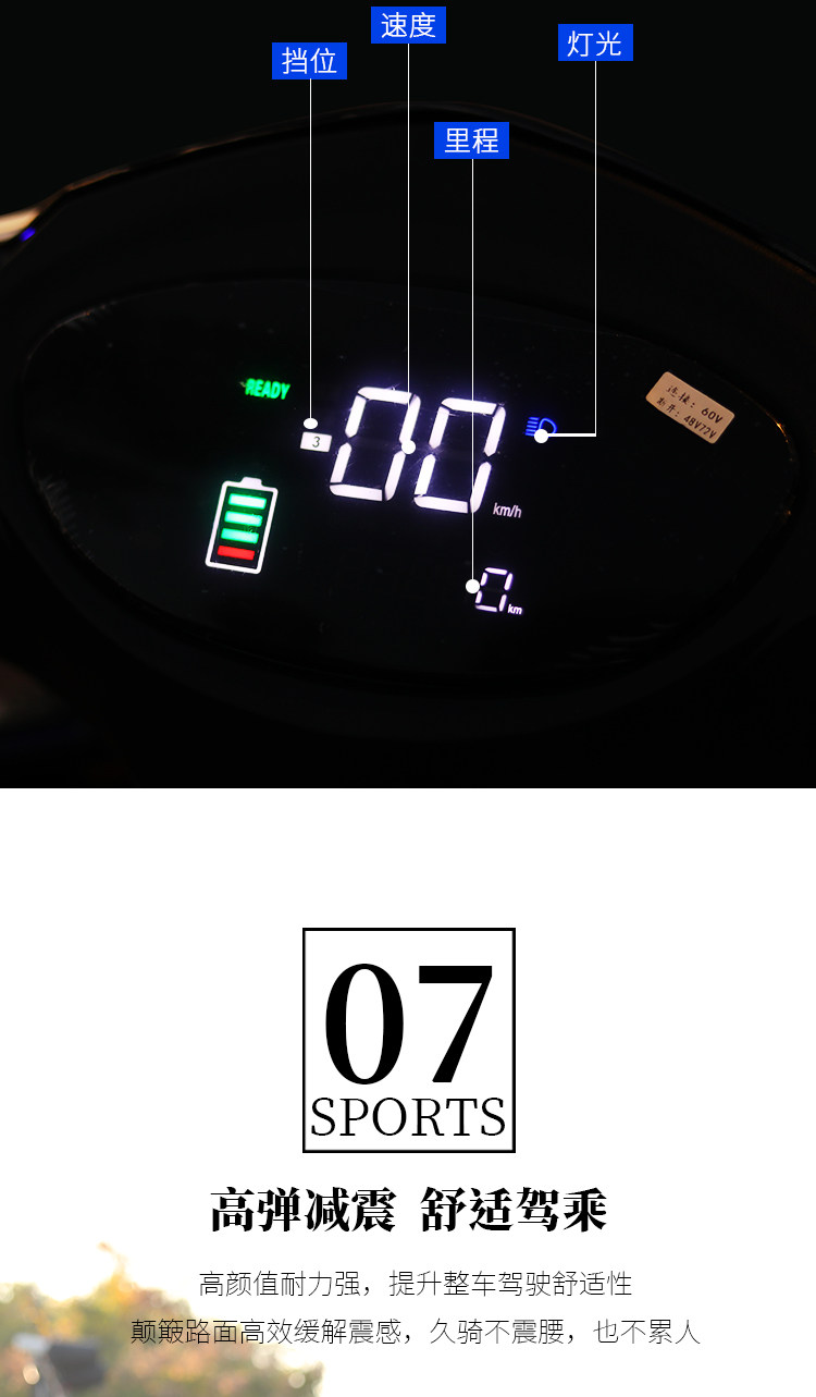 - Передние и задние дисковые тормоза+бампер+хвостовая коробка+72 Вольт 32 -лиденная кислотная батарея+зарядное устройство