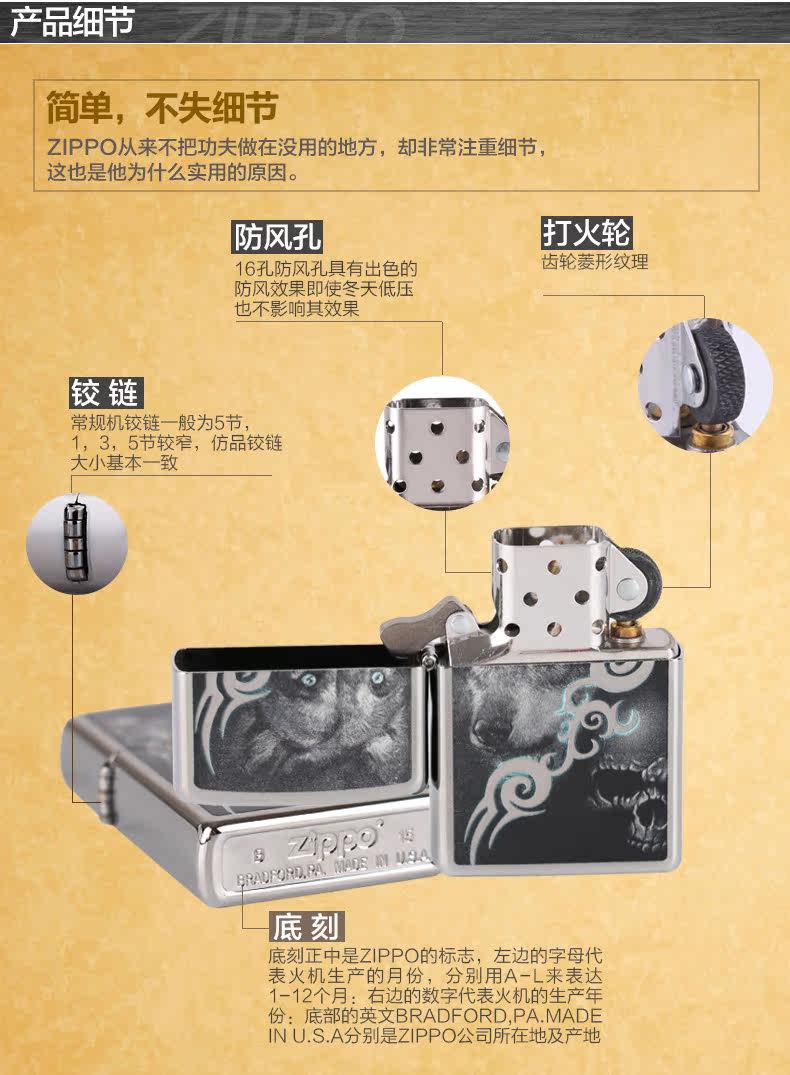 Подлинный Zippo более легкий подлинный мужчина Zppo American Original Zhibao Zioop Skeleton Wolf Zipp Kerose Oil ZP