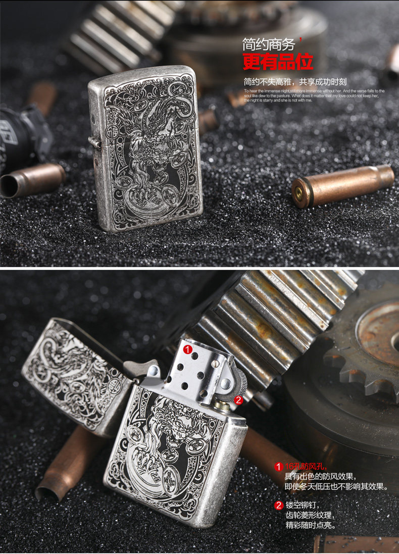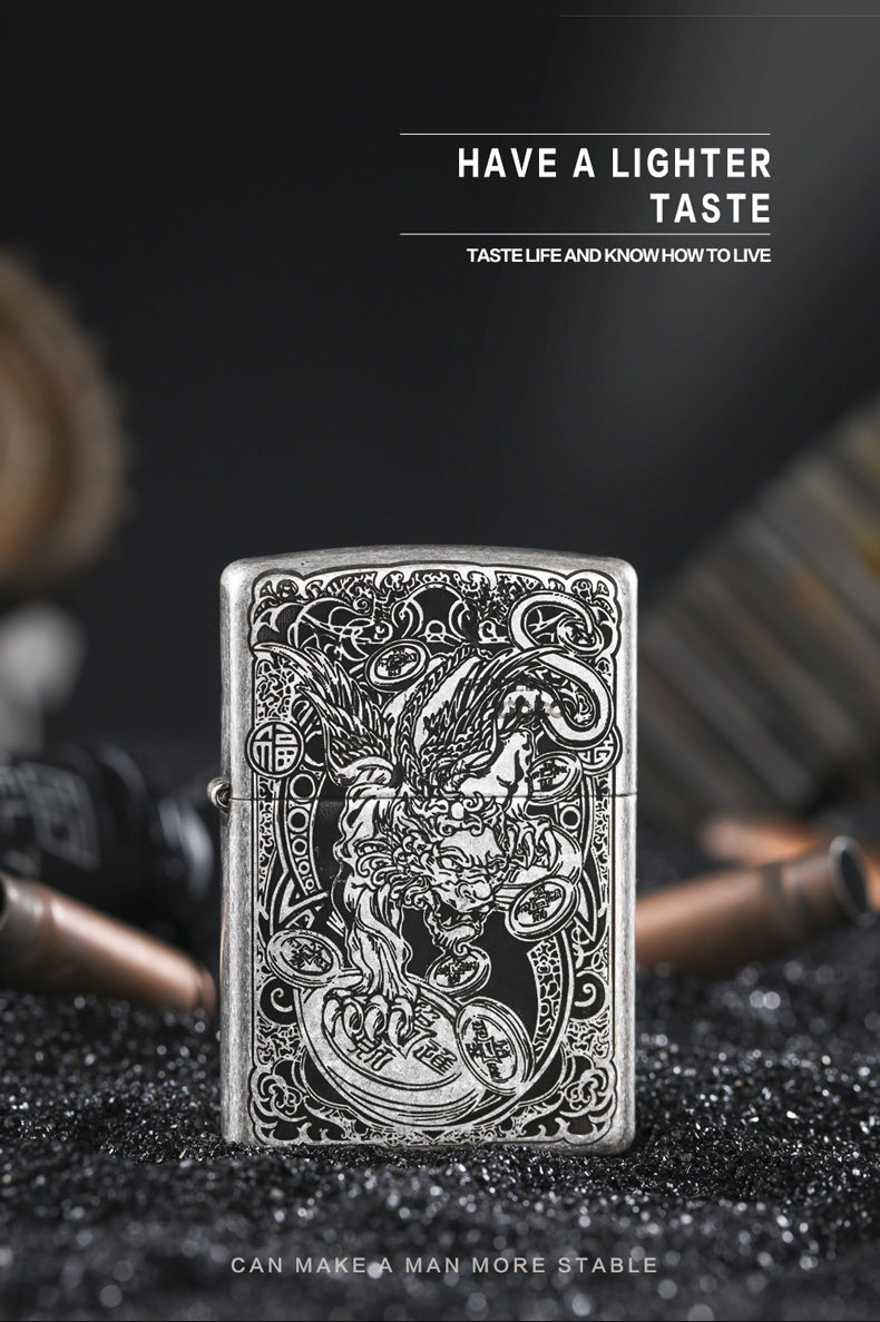 zippo Мужская оригинальная антикварная резная зажигалка, на удачу