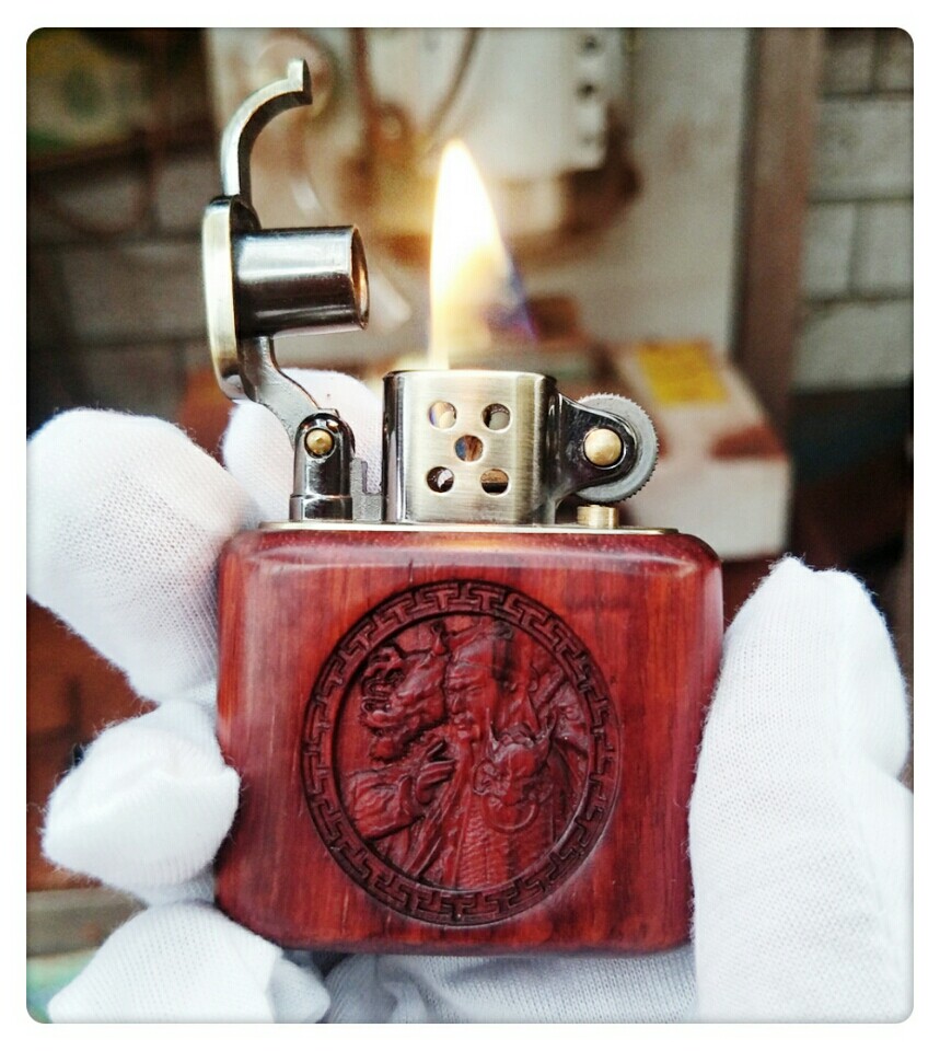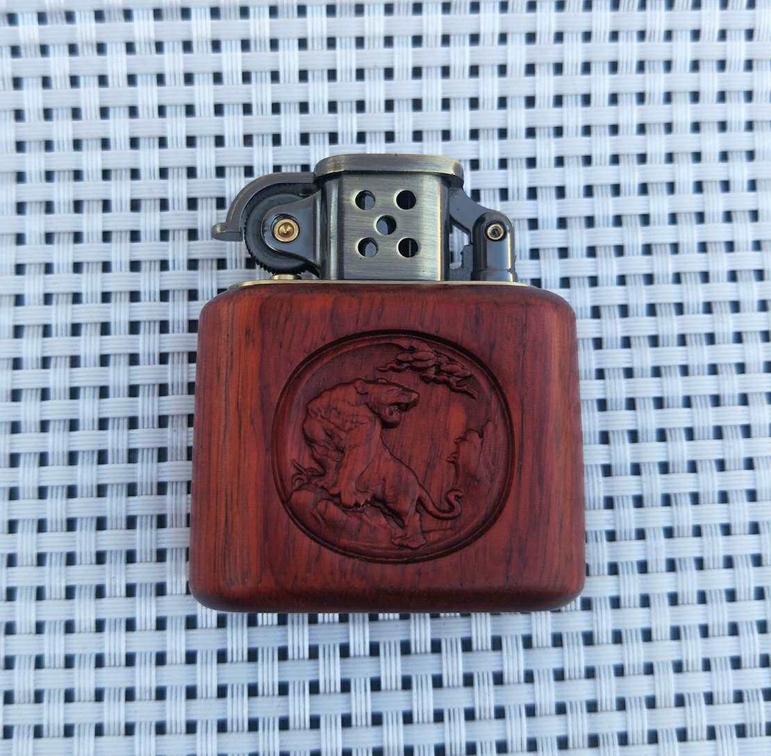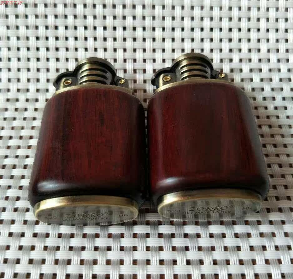 Ветрозащитная медная зажигалка из розового дерева на керосине из грецкого ореха