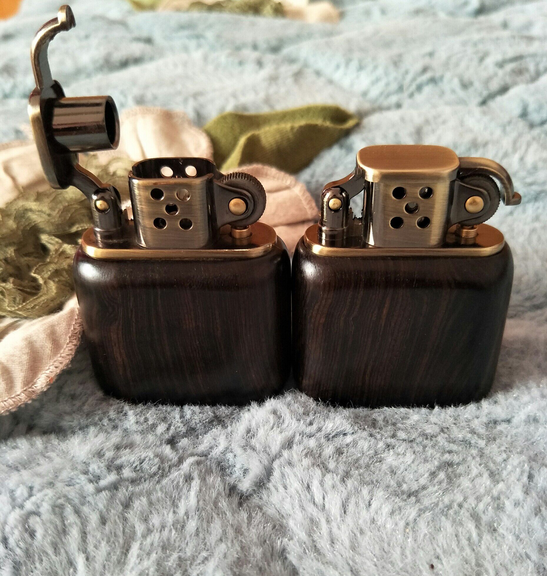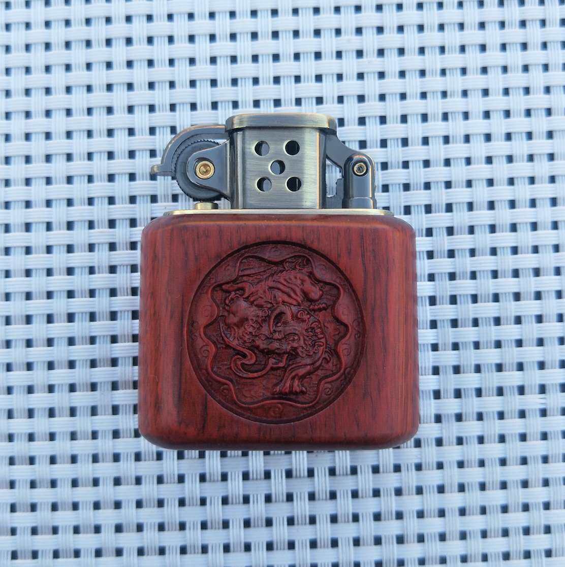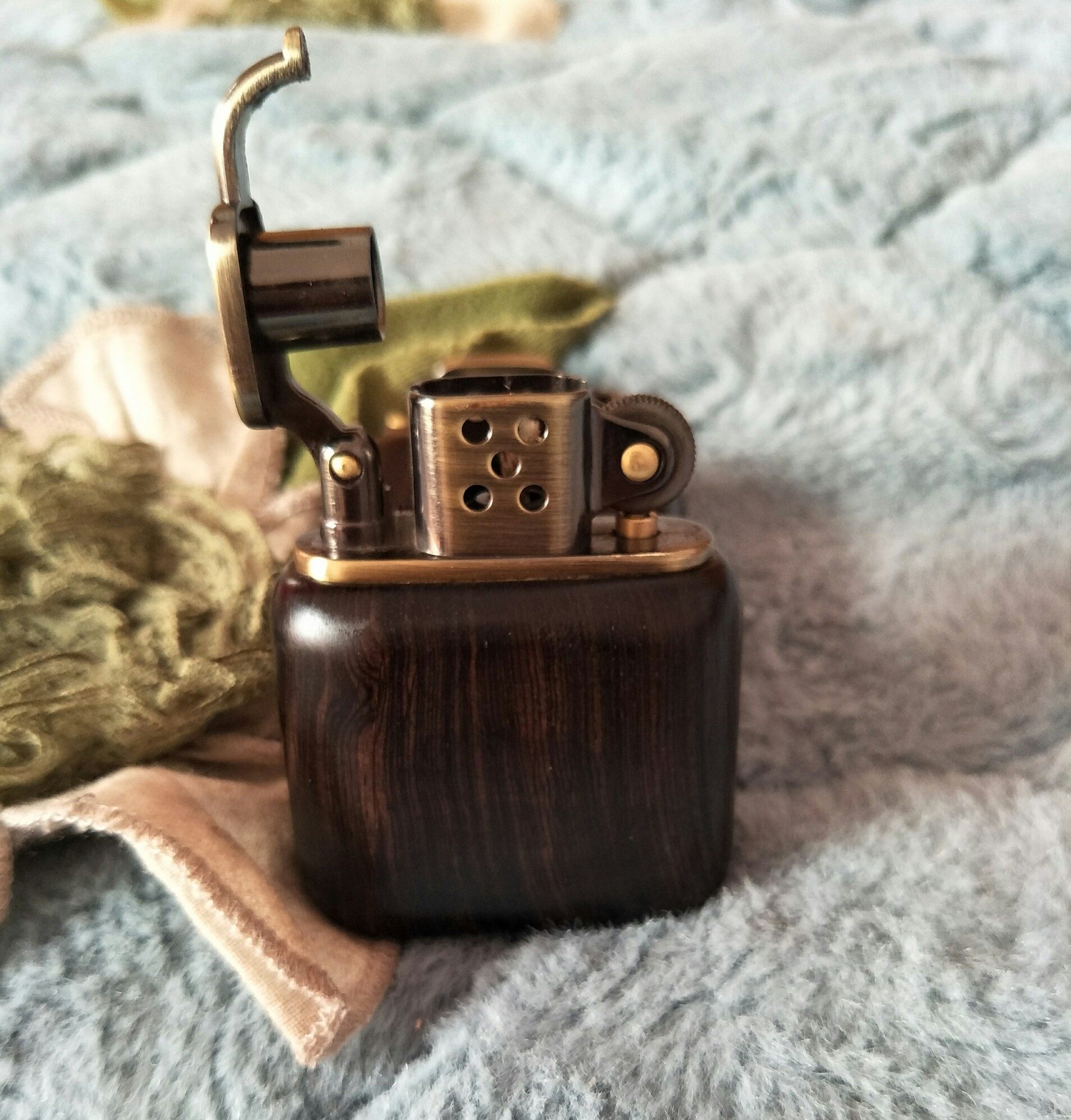 Ветрозащитная медная зажигалка из розового дерева на керосине из грецкого ореха
