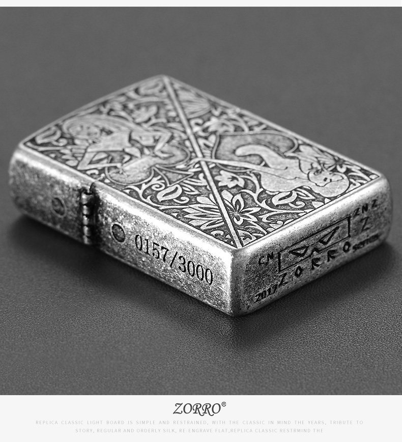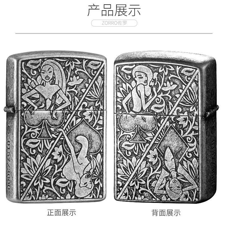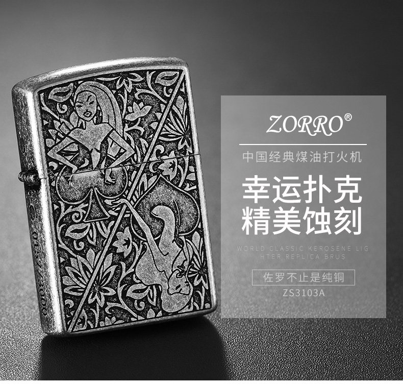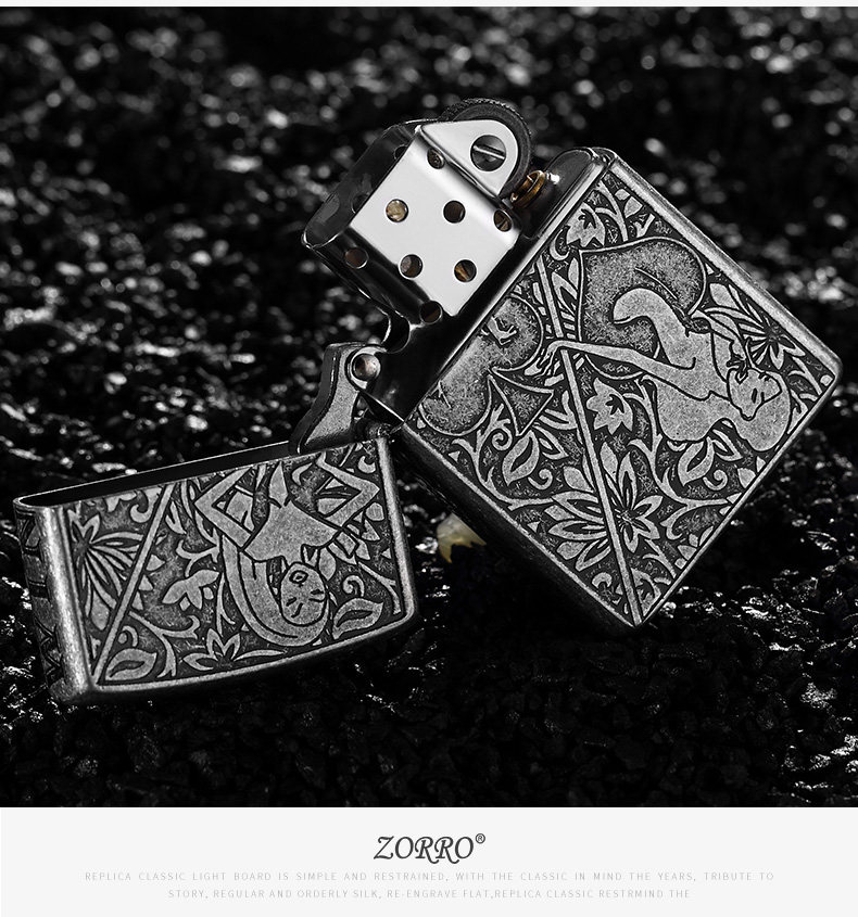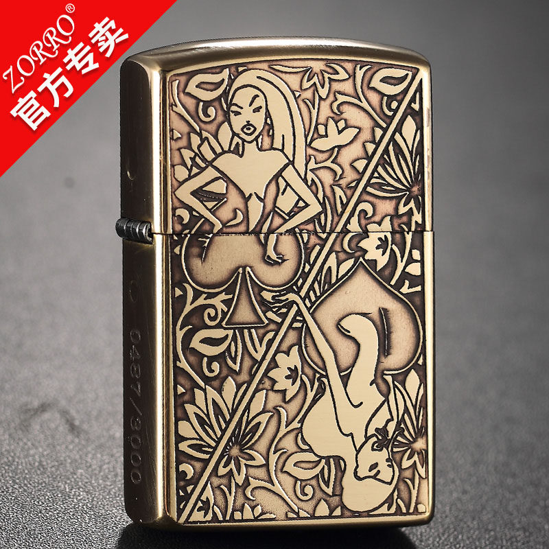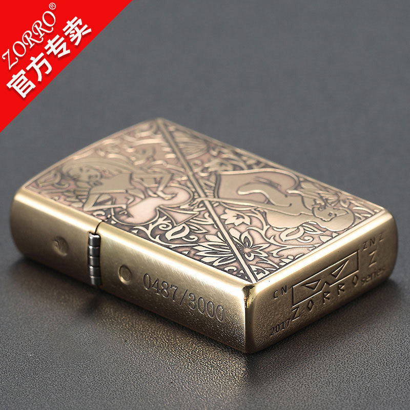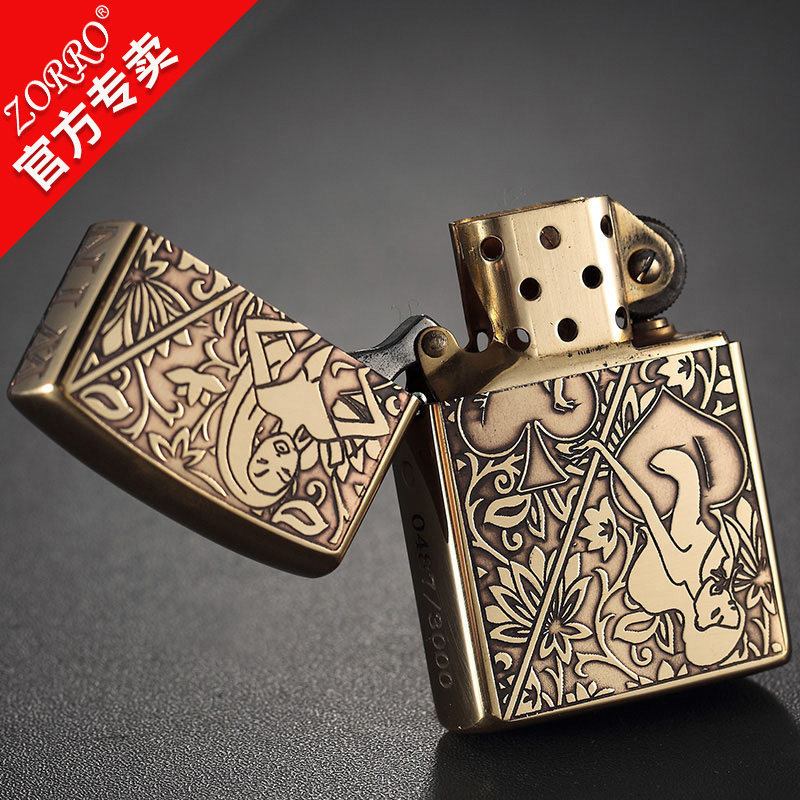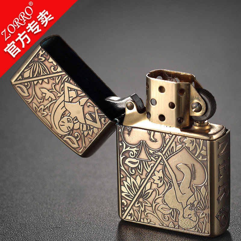 Новый сериал Zorro Z Аутентичный Zoro Kerosene Ligher Wind -Rayper Beauty Poker Poker Lighter Men Gift Authentic