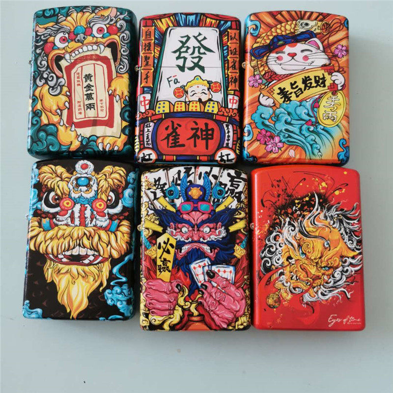 Бесплатная доставка Zoro Brass Шестистороннее окрашенное керосиновое зажигалка для привлечения богатства, удачи, золота, десяти тысяч удачи, бог азартных игр