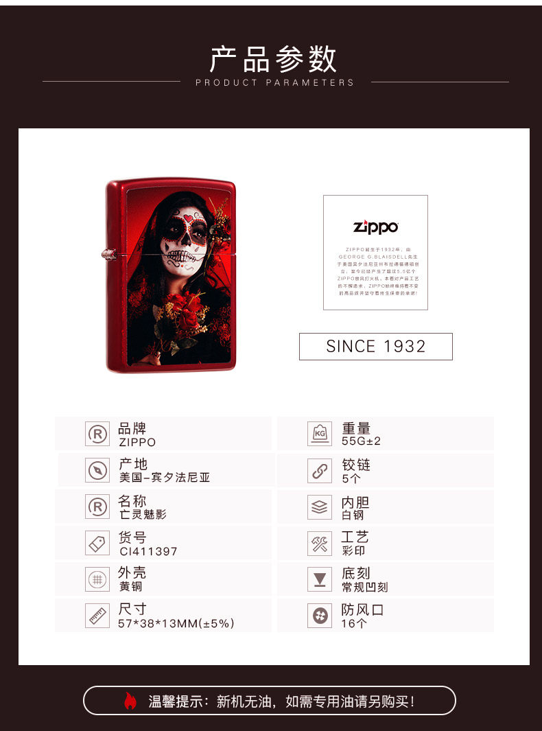 [Прямая эксплуатация] Zippo более зажигалка Zippo, задержанный зажигалка, Zippo Men's Dead Spirit Phantom Phamium CI411397