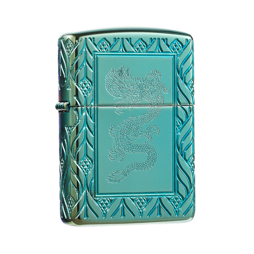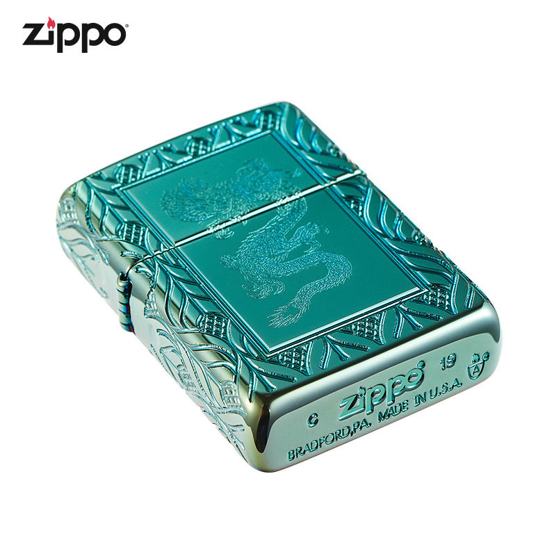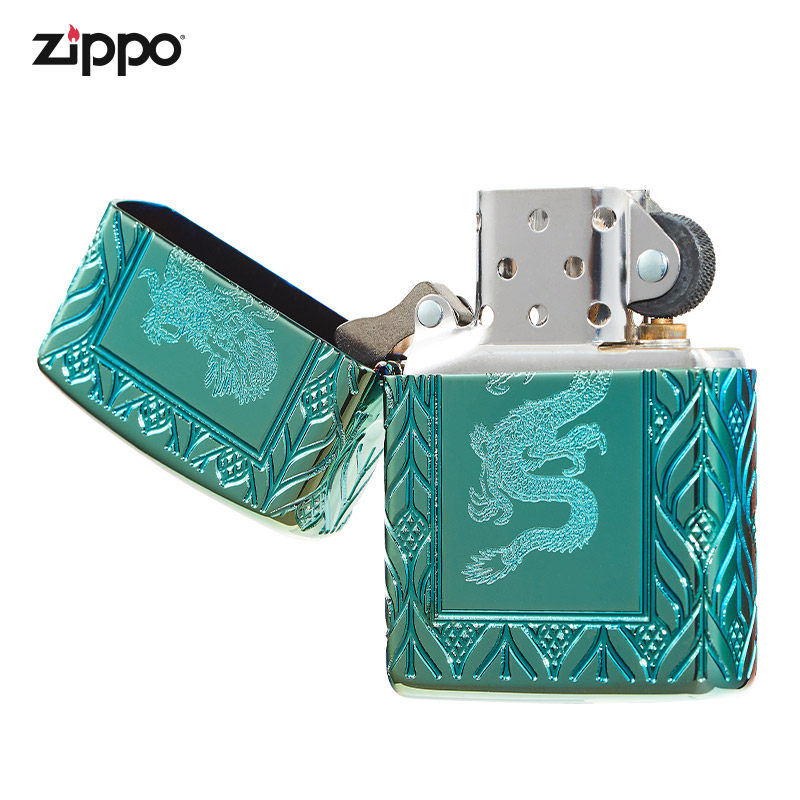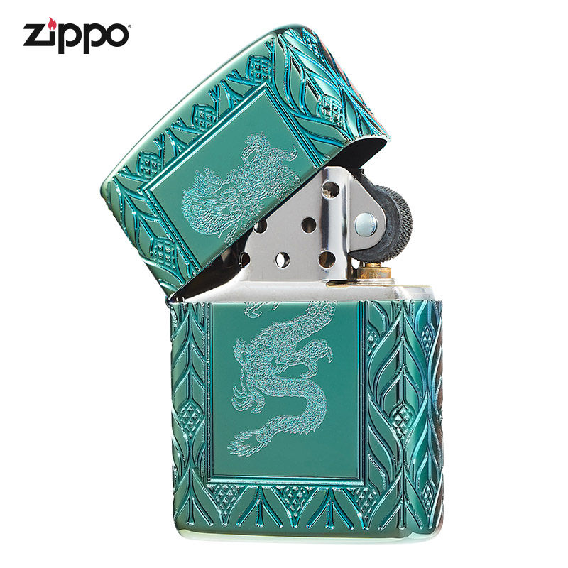 [Прямая эксплуатация] Zippo настоящий зажигалка Zippo Men's Armor Green Ice and Dragon 49054 Wind -Researder Ligher