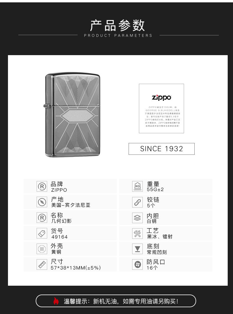 [Прямой бизнес] Zippo подлинный мусор Zippo Мужской геометрический фантом 49164 Пожарная машина Zhibao Business