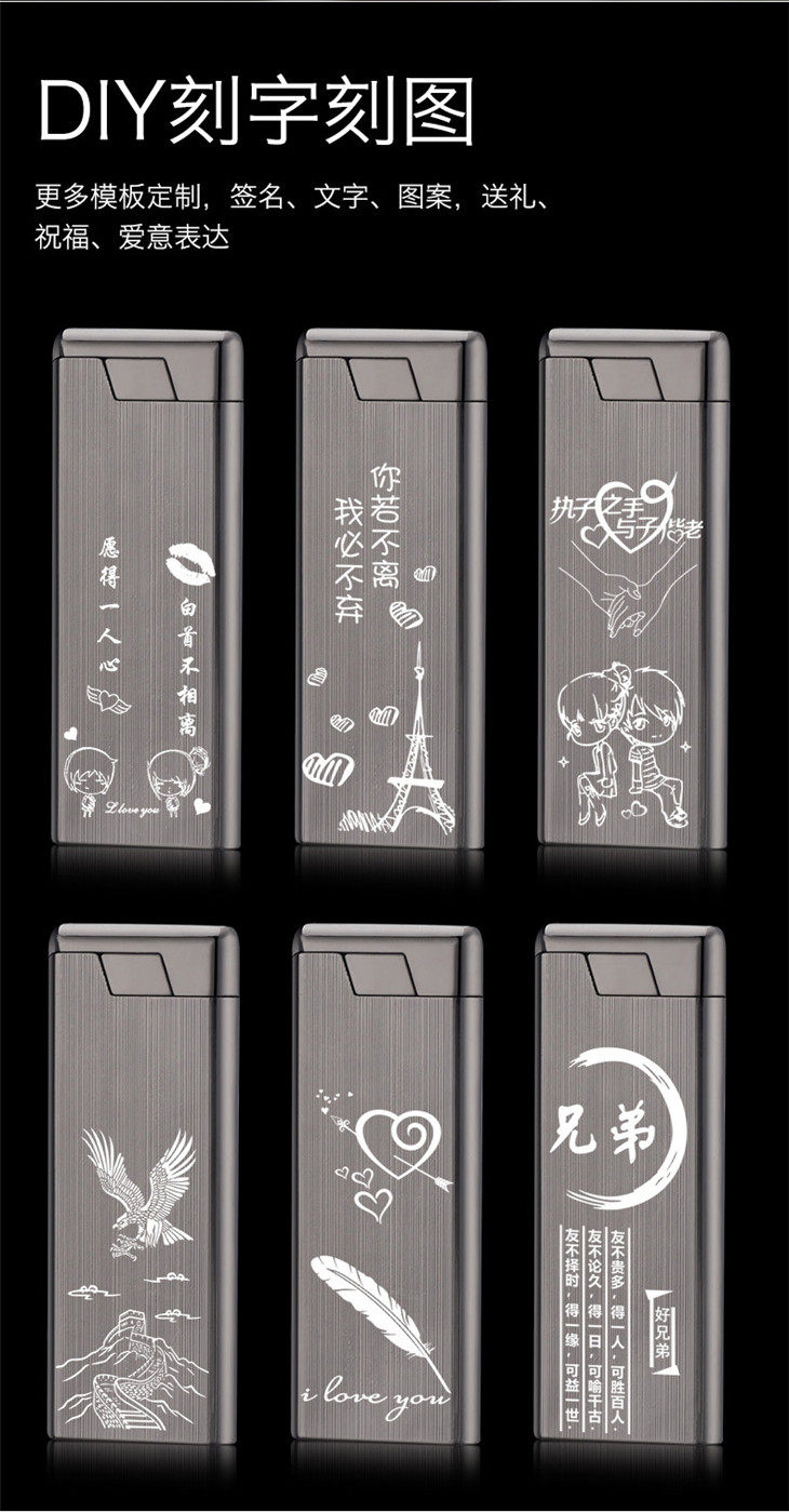 Мужская креативная ультратонкая металлическая ветрозащитная зажигалка, делается под заказ