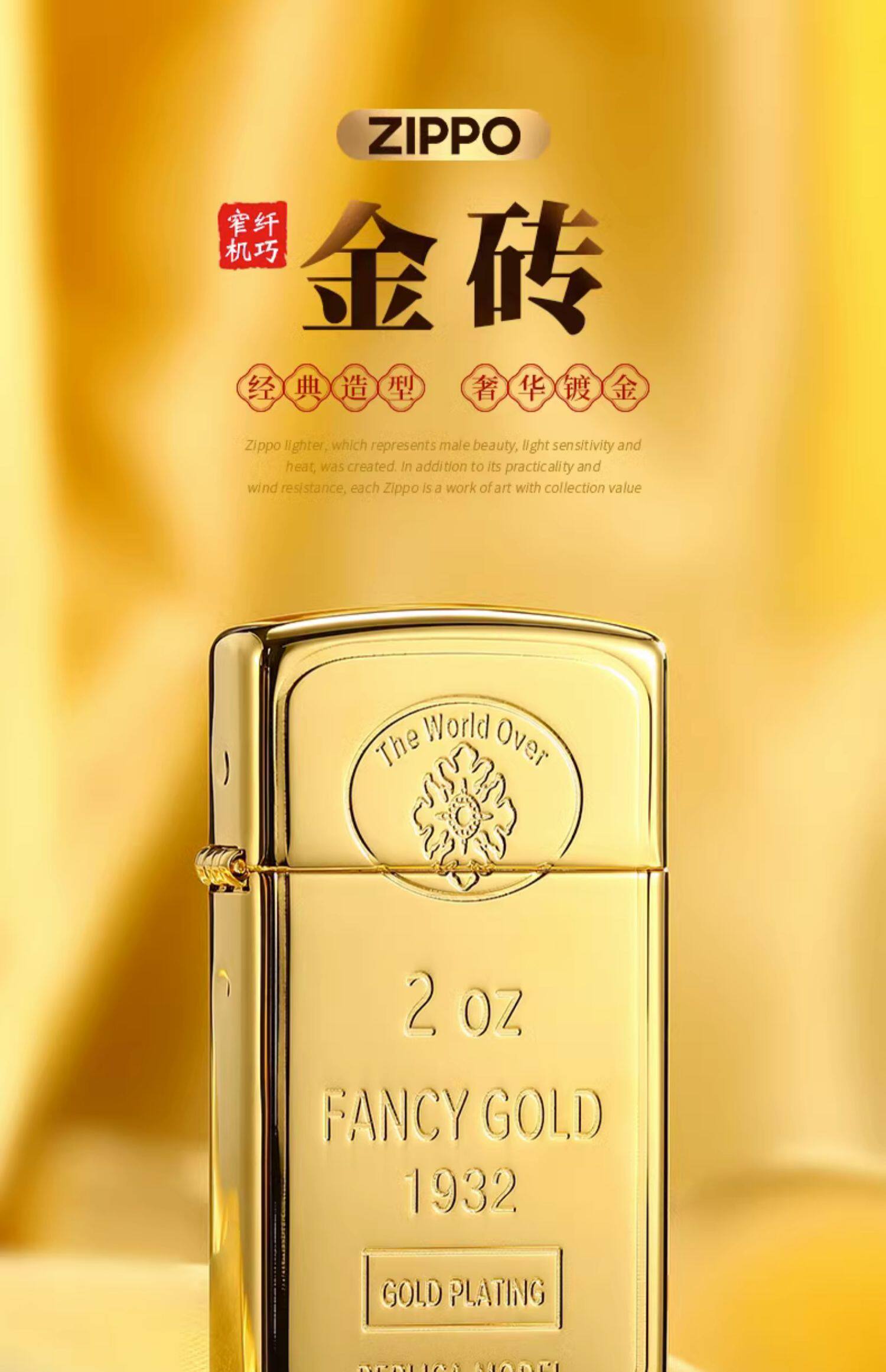 zippo Более легкий тонкий золотой кирпичный кирпич Официальный флагманский флагман подлинный высококачественный подарок ограниченный выпуск стойки аутентичный