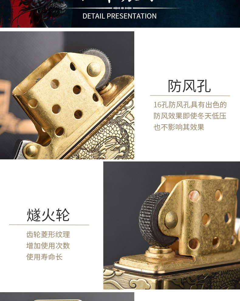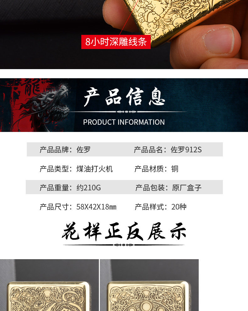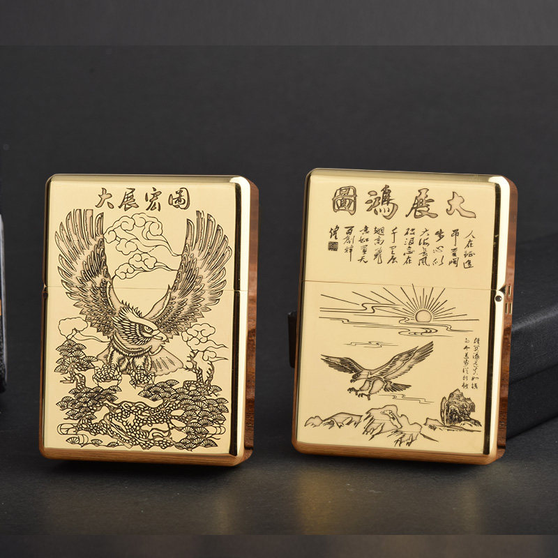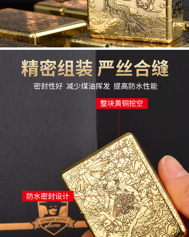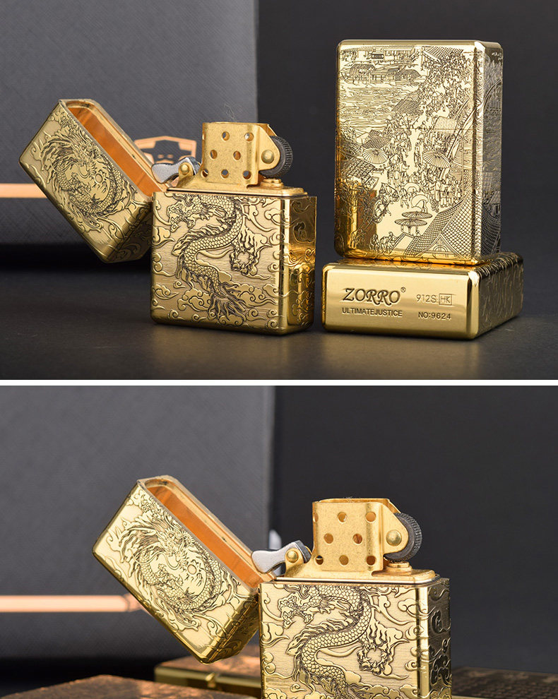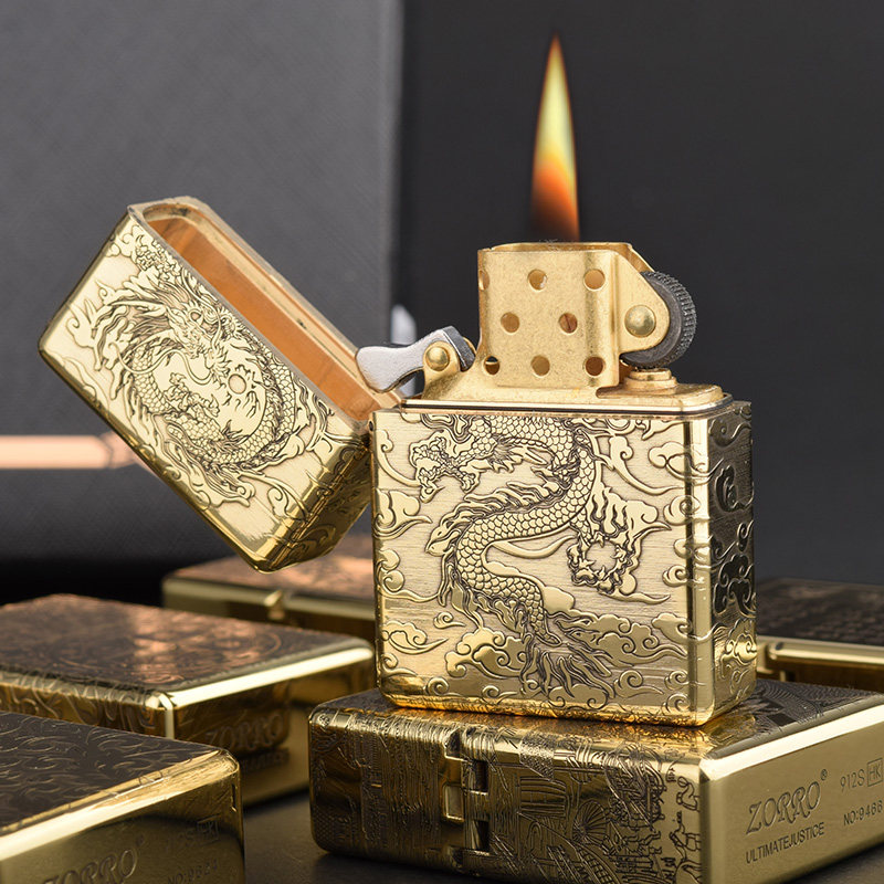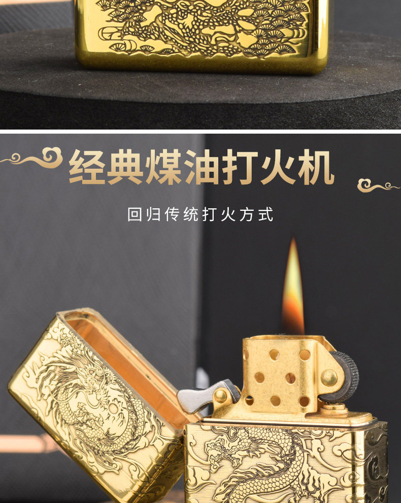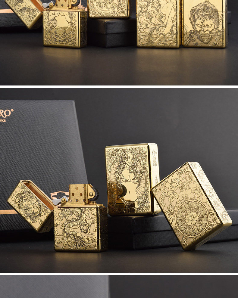 Мужская тяжелая латунная резная ретро зажигалка на керосине