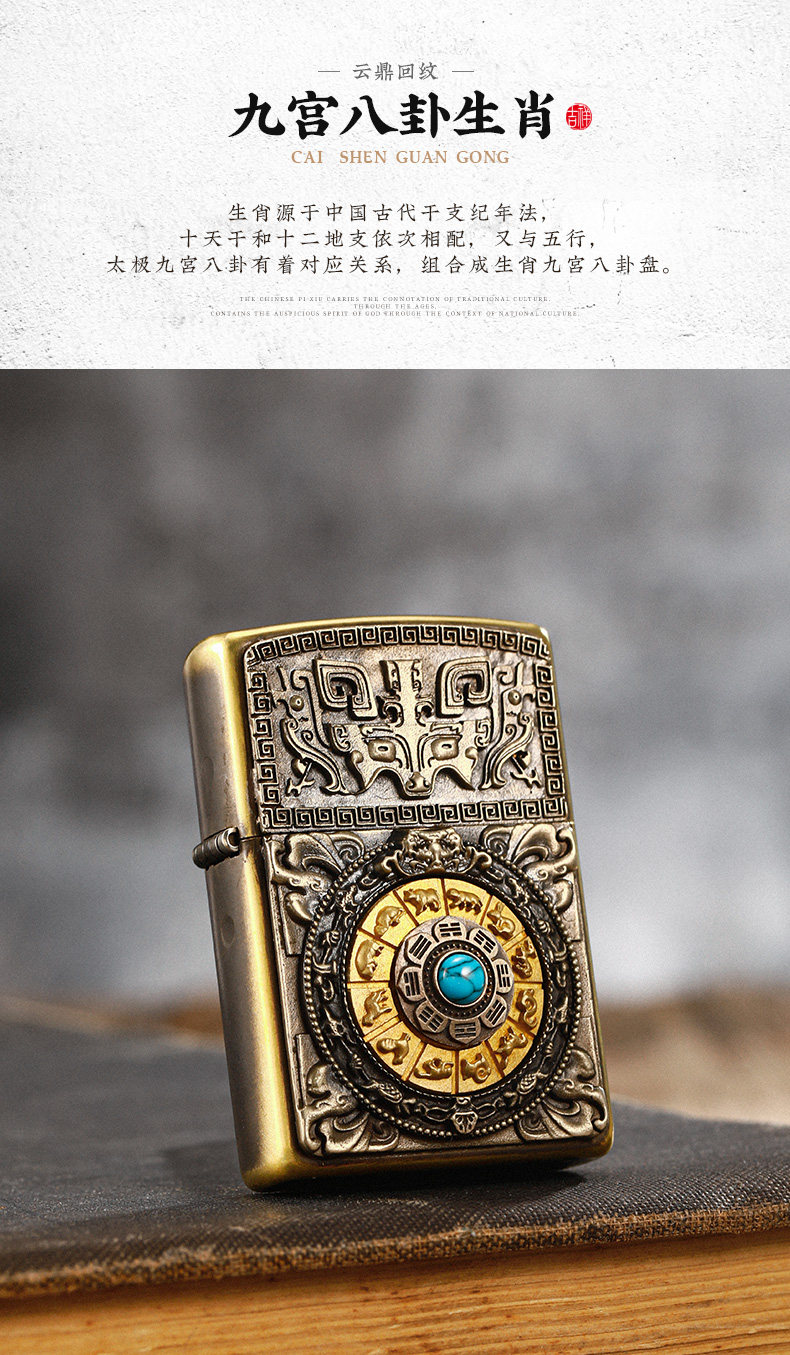 [Китайский подарок на День святого Валентина] Зажигалка Zippo Jiugong Bagua, наклейка из настоящего керосина, ветрозащитный подарок для парня