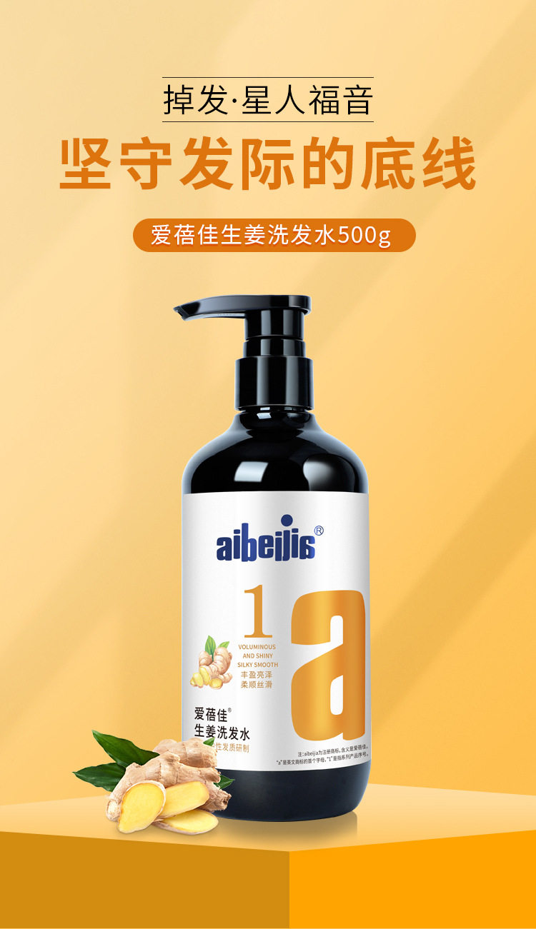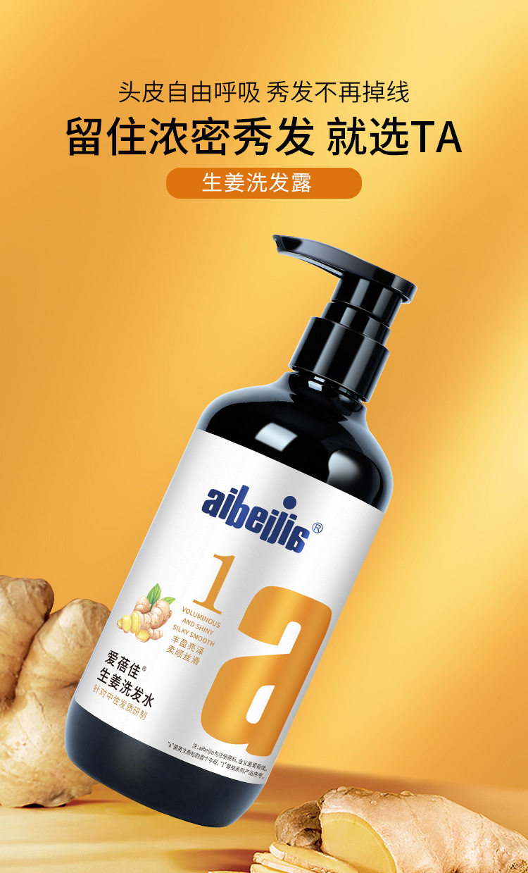 爱蓓佳 Питательный шампунь с имбирем, кондиционер, восстанавливающие пряди волос, здоровые волосы, удаление перхоти, 500 мл