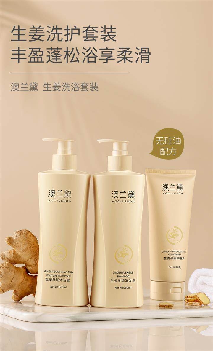 TikTok, комплект с имбирем, шампунь, гель для душа, кондиционер