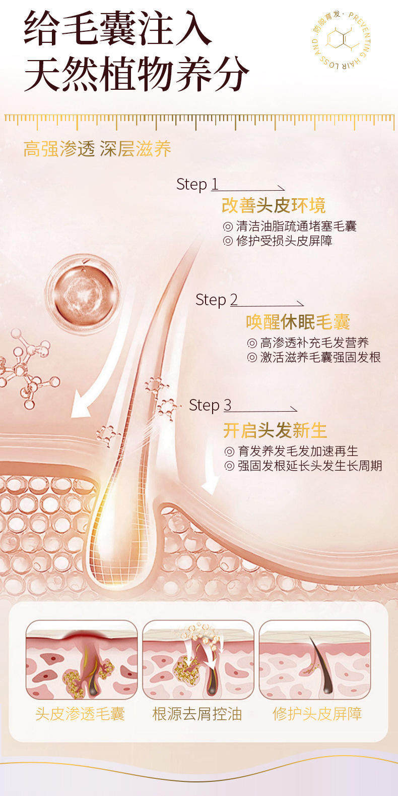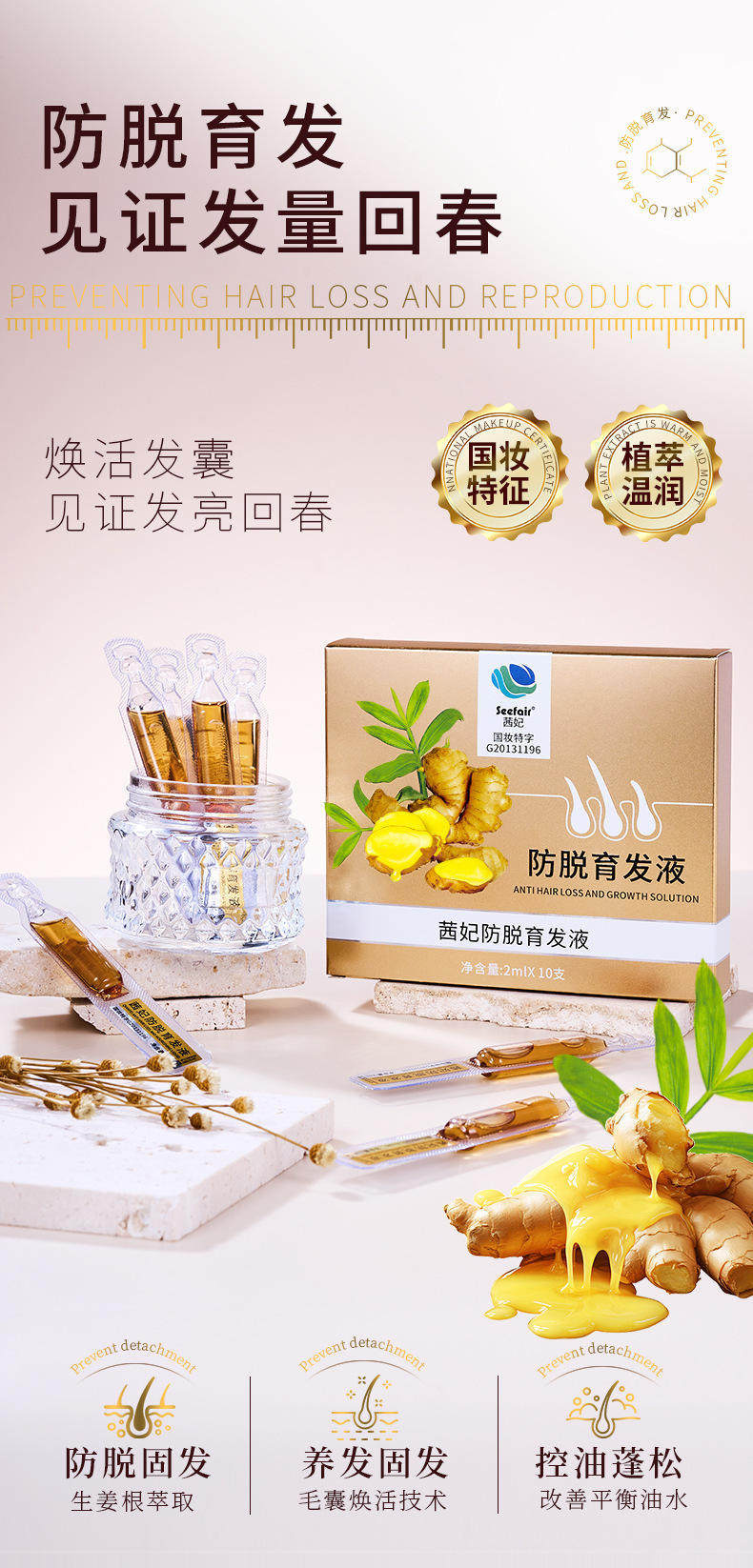 Сыворотка с имбирем, травяной лосьон для волос с экстрактом растений, антиалопеция