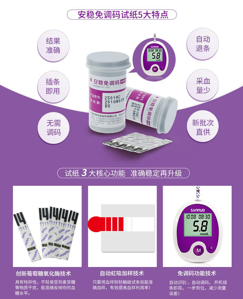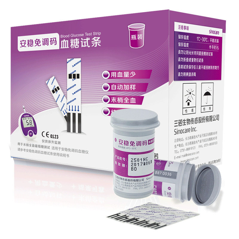 Sannuo Anbian -Бесплатная кровяная глюкоза испытательная инструментальная тестовая полоса 50 Таблетки испытательная бумага испытания сахара в крови домохозяйственная полоса Бесплатная доставка