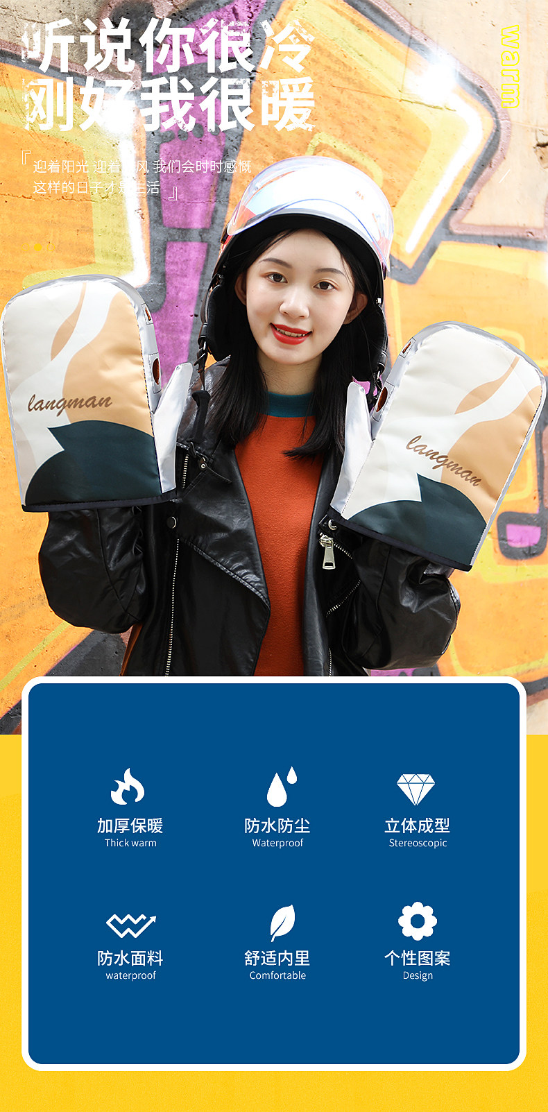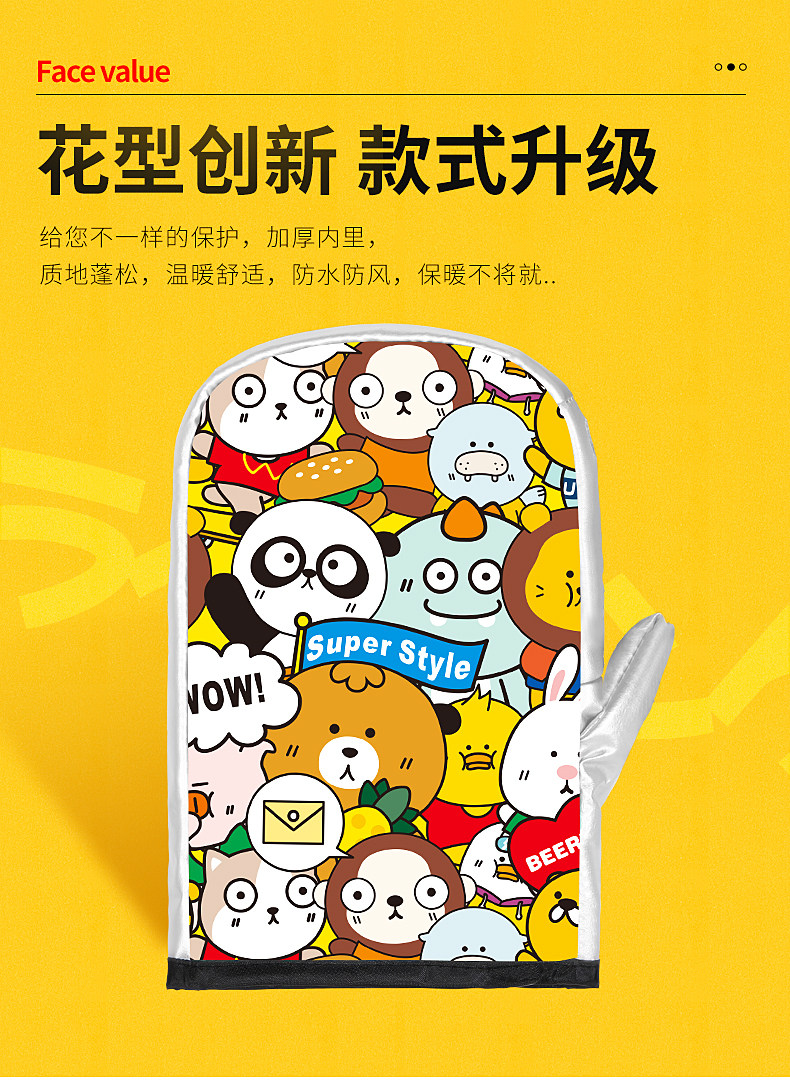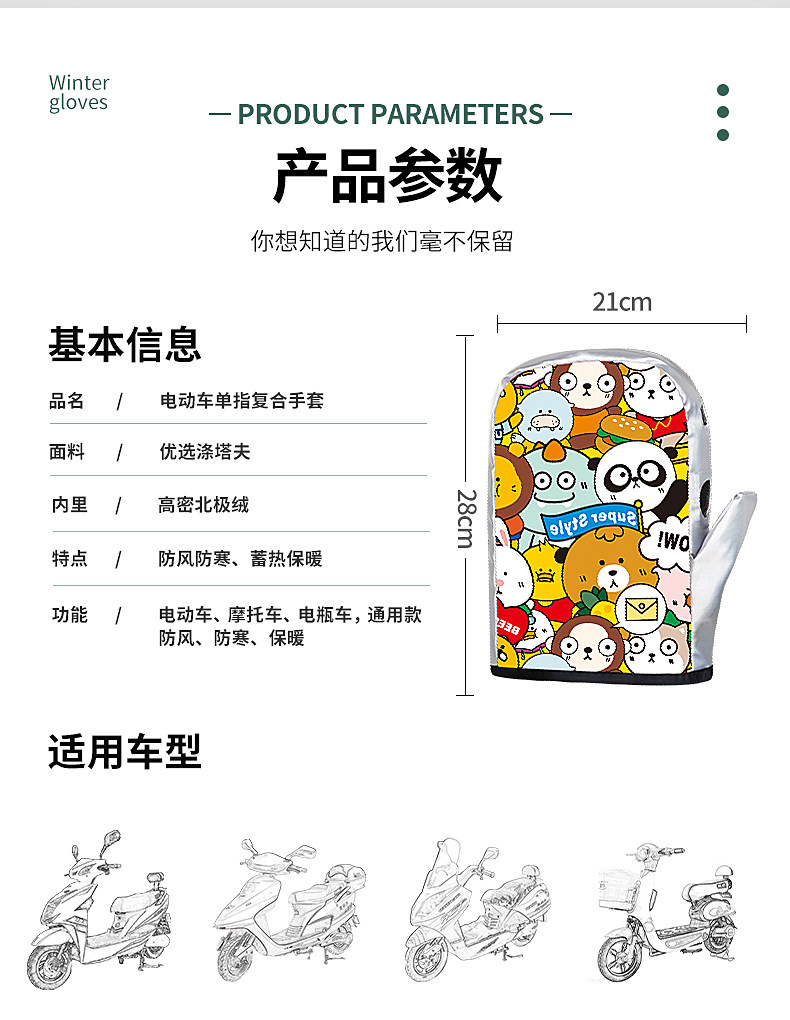 Электрическая ручка, удерживающая тепло флисовая рукоятка, ветрозащитные водонепроницаемые перчатки подходит для мужчин и женщин, увеличенная толщина