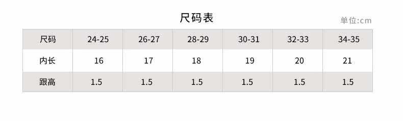 | Размер обуви: | 24-25 (обувь длиной 16 см), 26-27 (обувь 17 см), 28-29 (обувь длиной 18 см), 30-31 (обувь 19 см), 32-33 (обувь длиной 20 см), 34-35 (обувь длиной 21 см) |