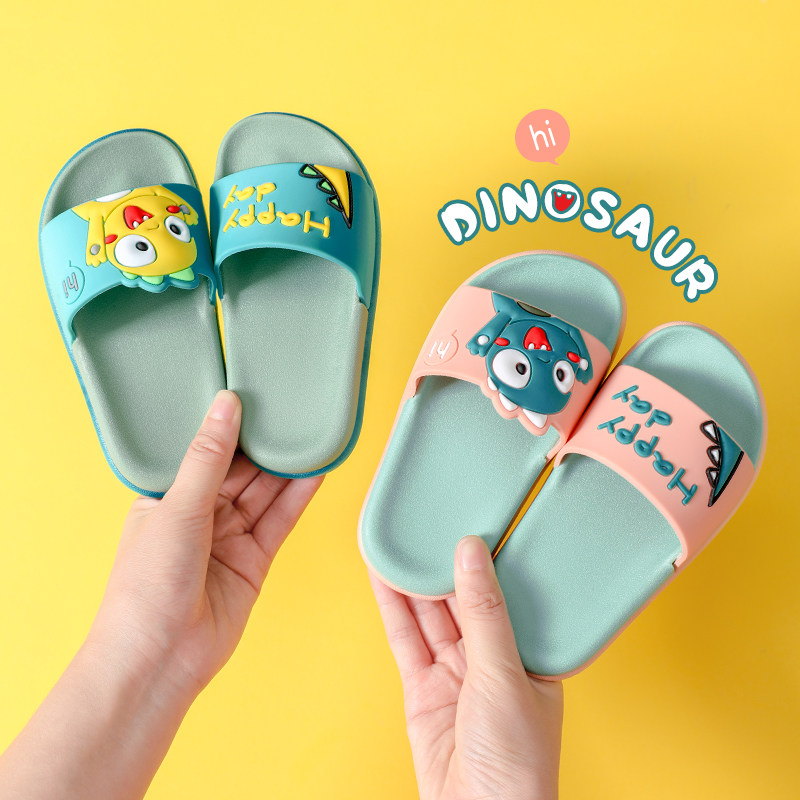 Детский динозавр, нескользящие тапочки для мальчиков для ванны, детские слайдеры, мягкая подошва, семейный стиль