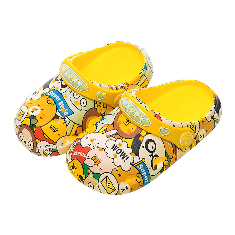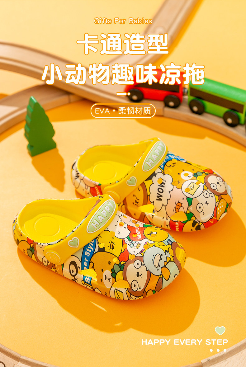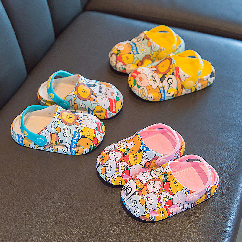 Детские летние мультяшные тапочки для раннего возраста для мальчиков, милые модные нескользящие слайдеры, мягкая подошва