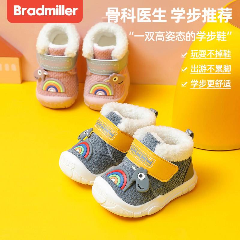 Хлопковая обувь для мальчиков, сезонная и зимняя детская обувь, утолщенная 1 мягкая подошва, нескользящая, 2 хлопковые туфли для малышей осенью и зимой, а также бархатные женские туфли для малышей