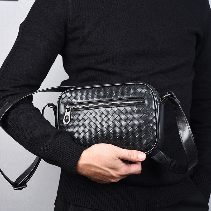 Сумка через плечо, маленький рюкзак, мужская небольшая сумка, плетеная кожаная сумка на одно плечо, из натуральной кожи