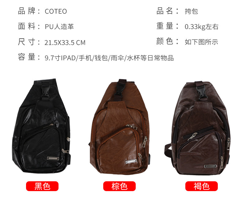 Ретро нагрудная сумка, водонепроницаемая сумка на одно плечо с usb-зарядкой, маленький полиуретановый ремешок для сумки для отдыха, вместительный и большой рюкзак