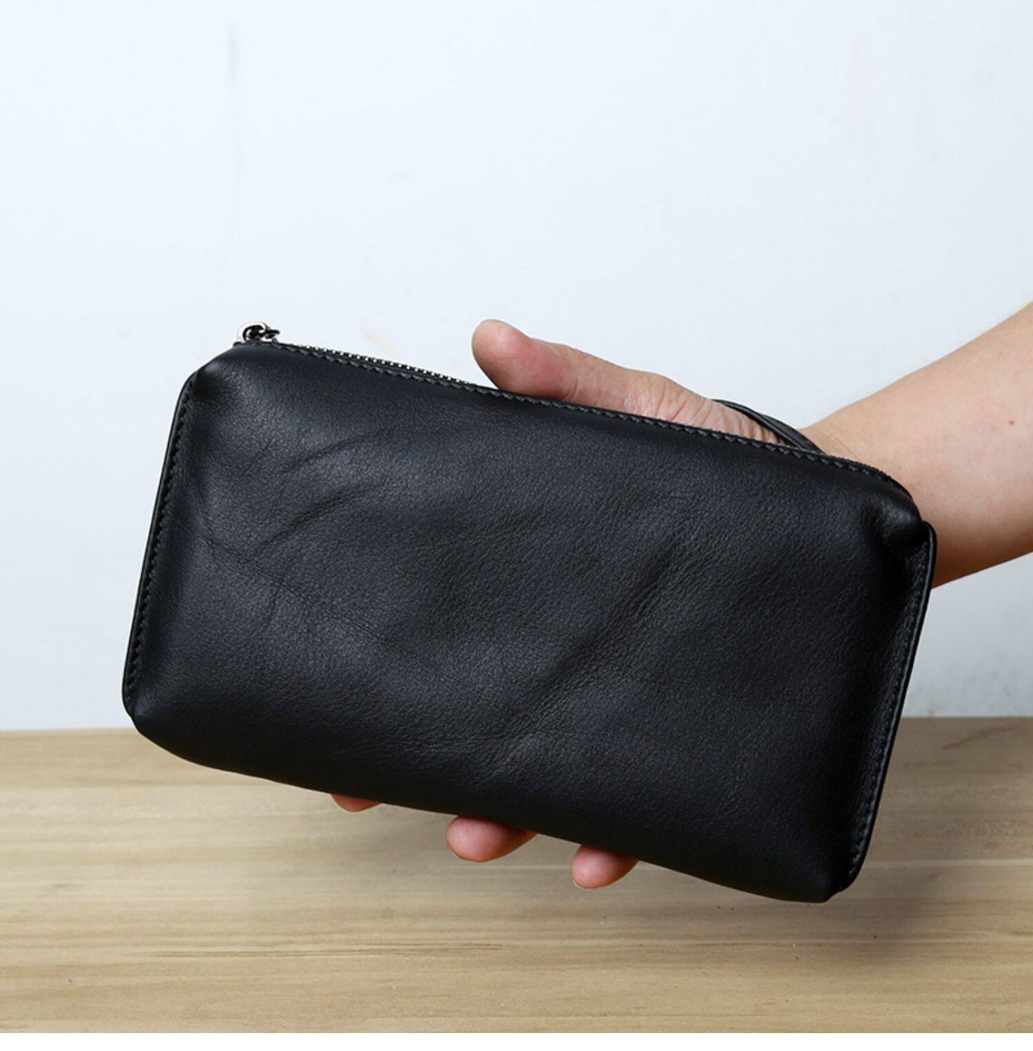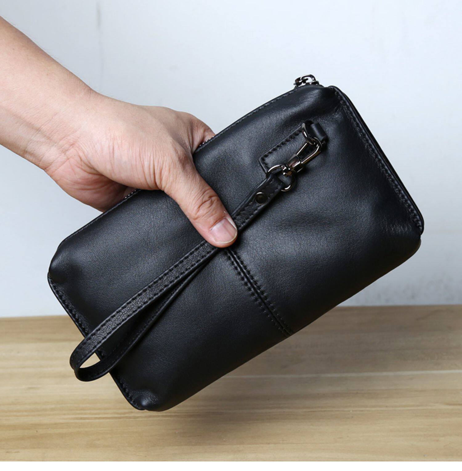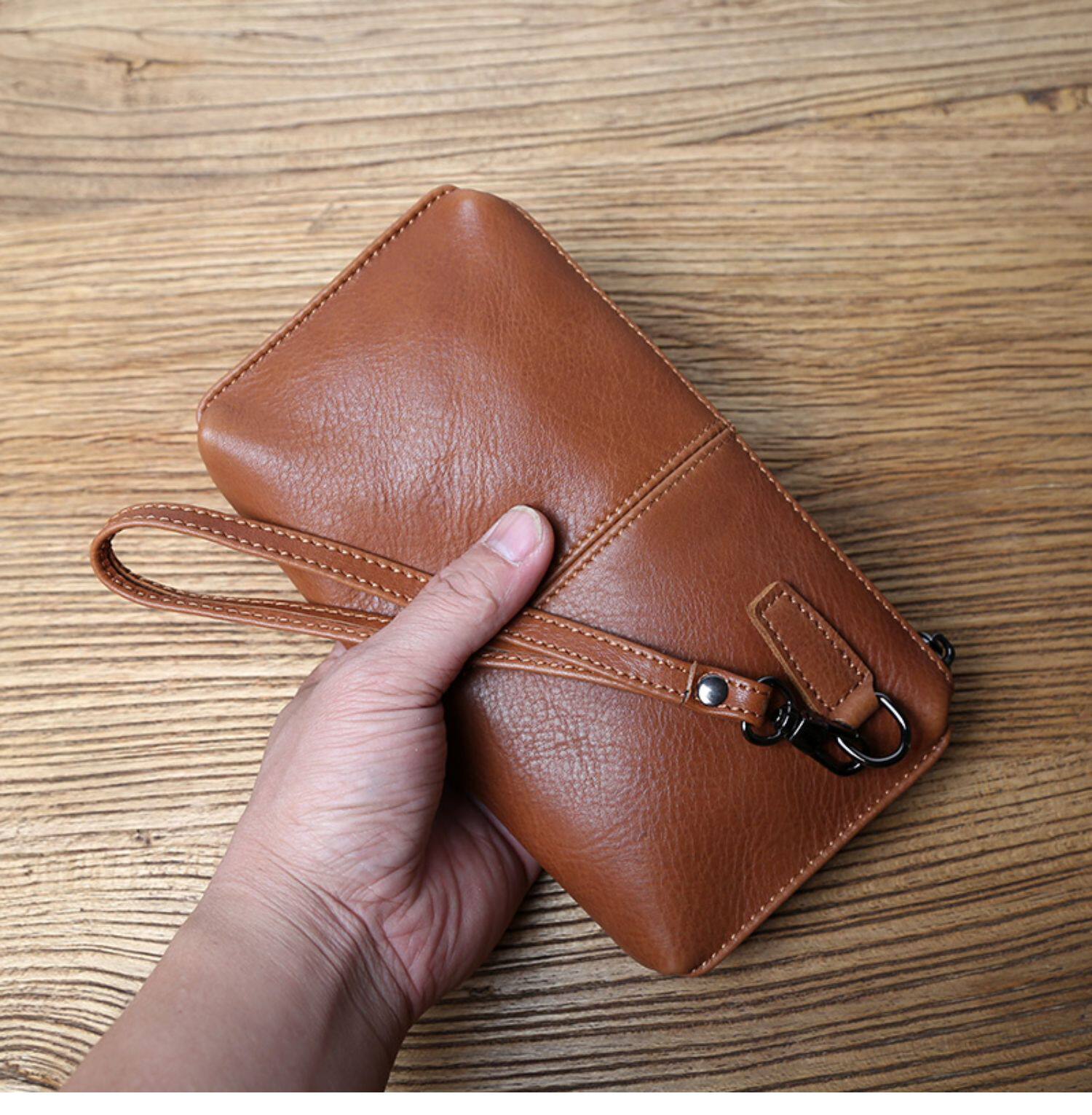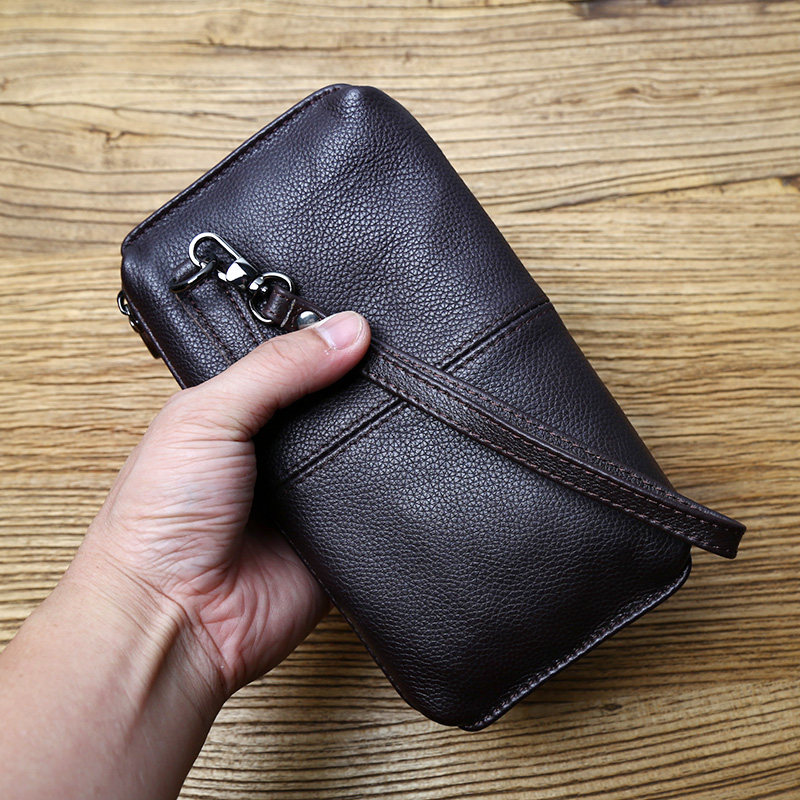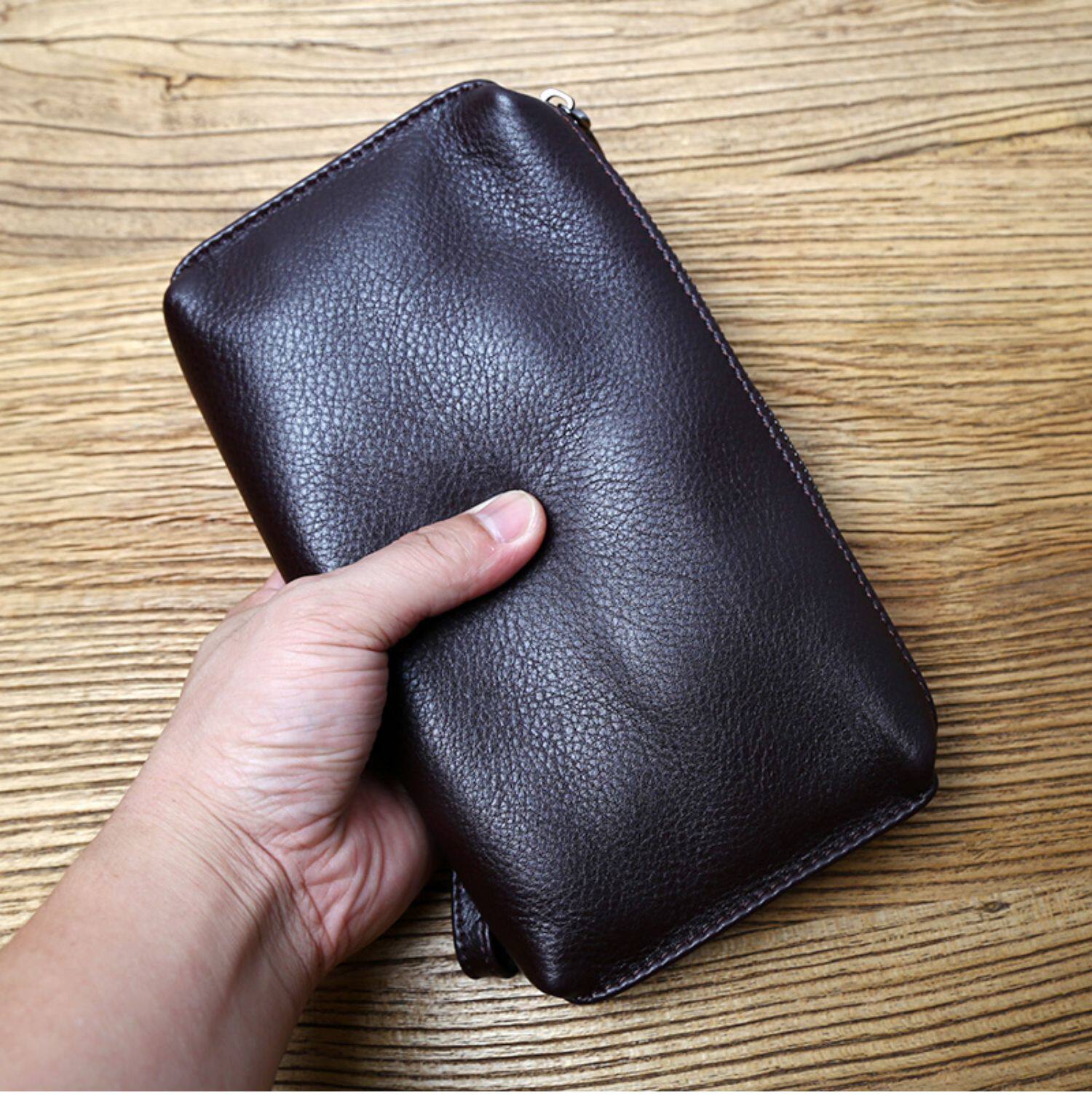 Сумка с петлей на руку, кожаная вместительная и большая маленькая сумка клатч для отдыха, длинный бумажник с молнией, из натуральной кожи, бизнес-версия