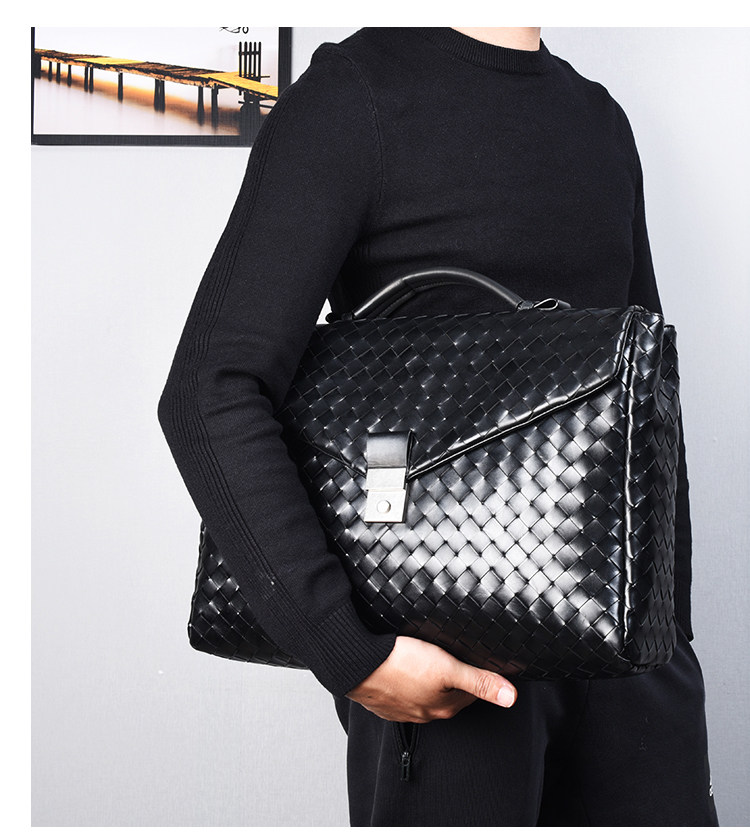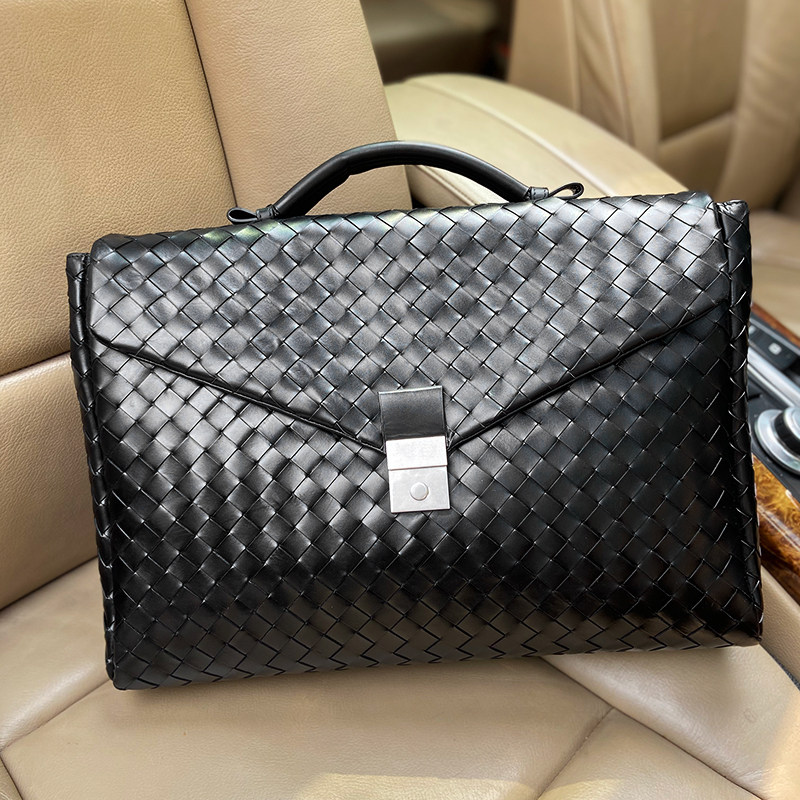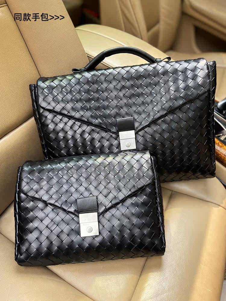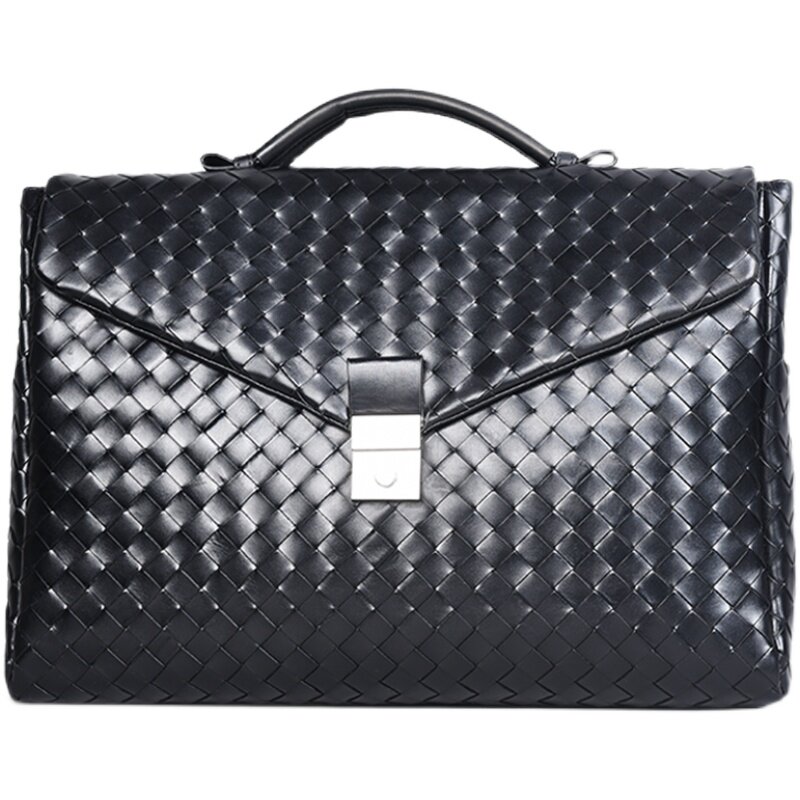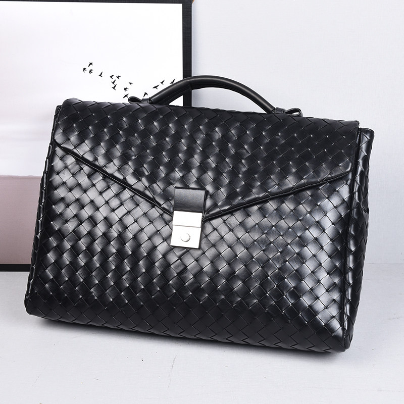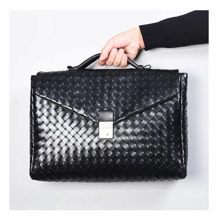 Барсетка, вместительная и большая кожаная плетеная сумка, из натуральной кожи