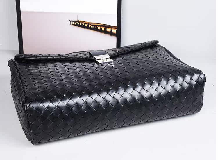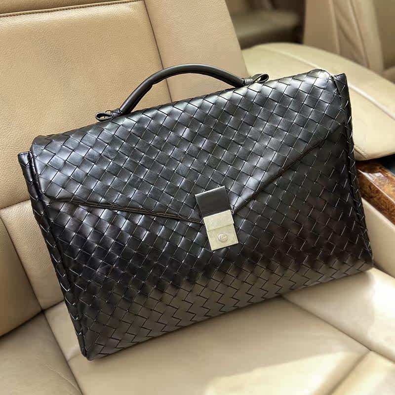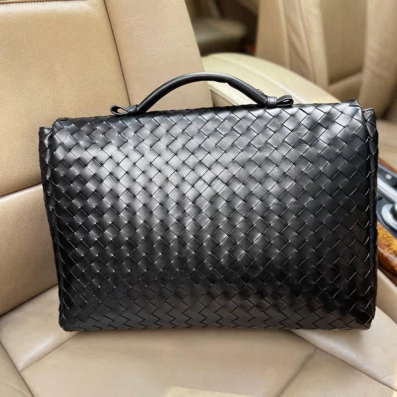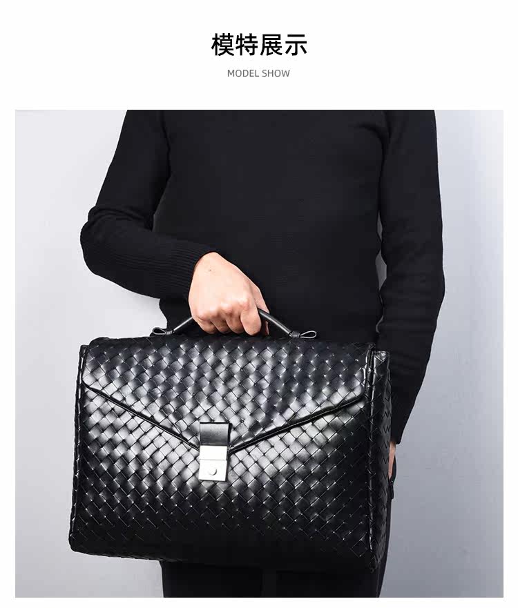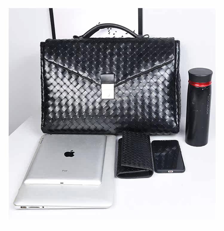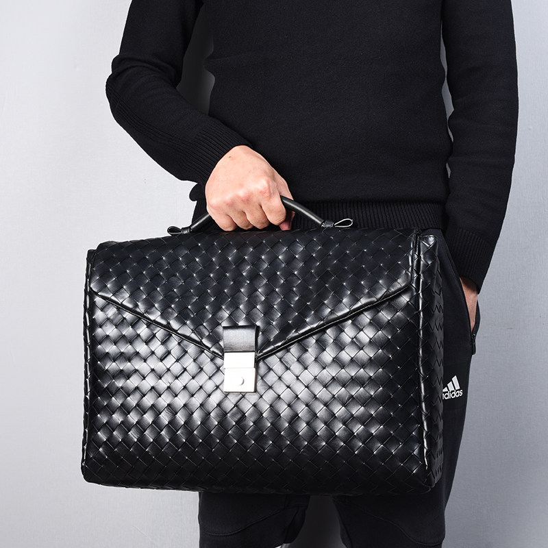 Барсетка, вместительная и большая кожаная плетеная сумка, из натуральной кожи