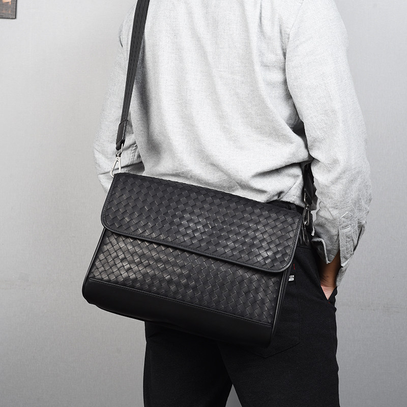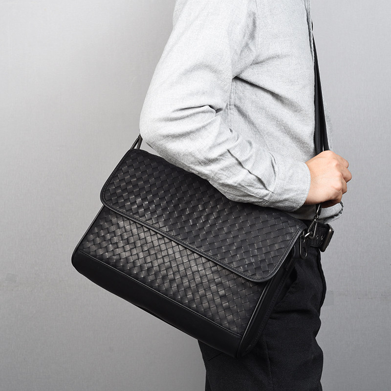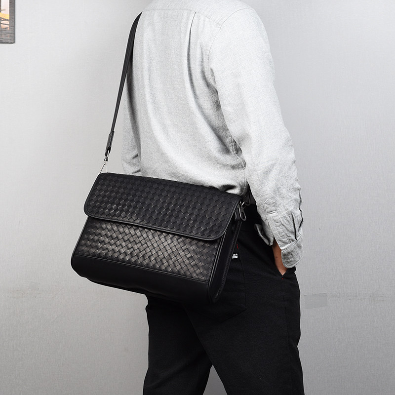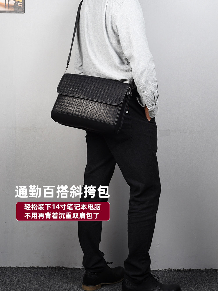Вместительная и большая сумка через плечо, ноутбук, плетеная сумка на одно плечо, 13 дюймов, из натуральной кожи