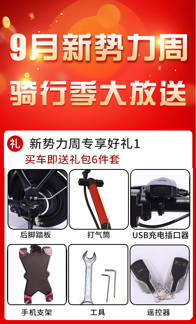 - [1-е поколение, несъемное и перезаряжаемое] Интеллектуальная защита от кражи/чистая электрическая мощность 45 км, дальность действия 90 км, двойной красный