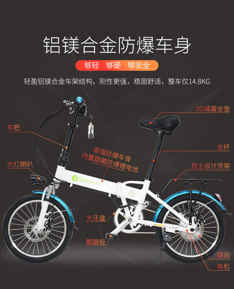 捷雅途 Складной электрический сверхлегкий велосипед, портативные литиевые батарейки с тормозной системой, ходунки для пожилых людей, электромобиль, мопед