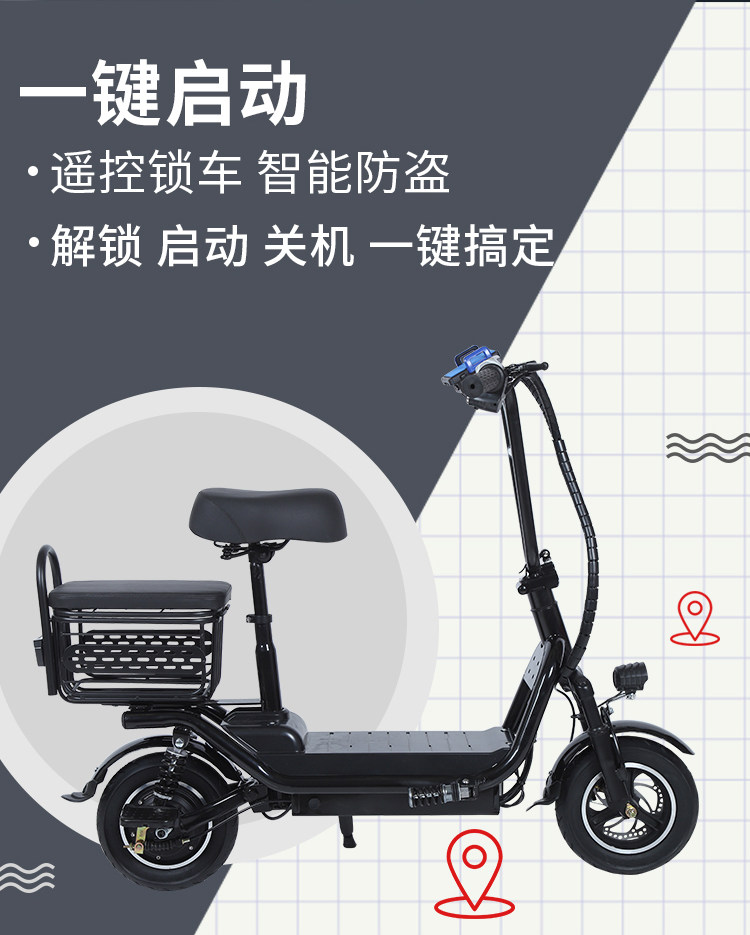 Складной маленький электромобиль для пожилых людей, литиевые батарейки подходит для мужчин и женщин для двоих для взрослых, портативный скейтборд, семейный стиль
