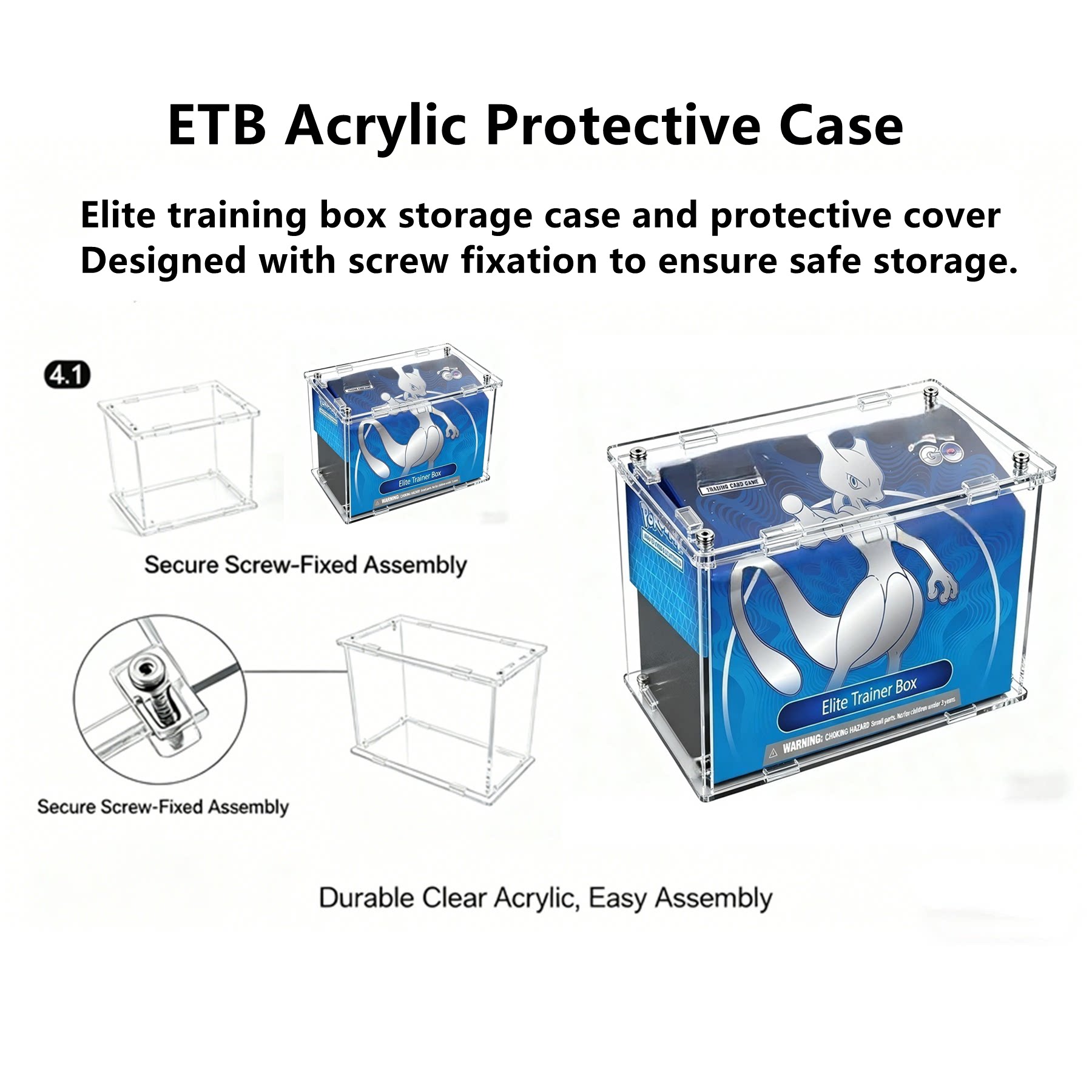 Витрина для карт покемонов ETB. Прозрачная акриловая защитная коробка. Пылезащитная оболочка для витрины коллекционного класса.