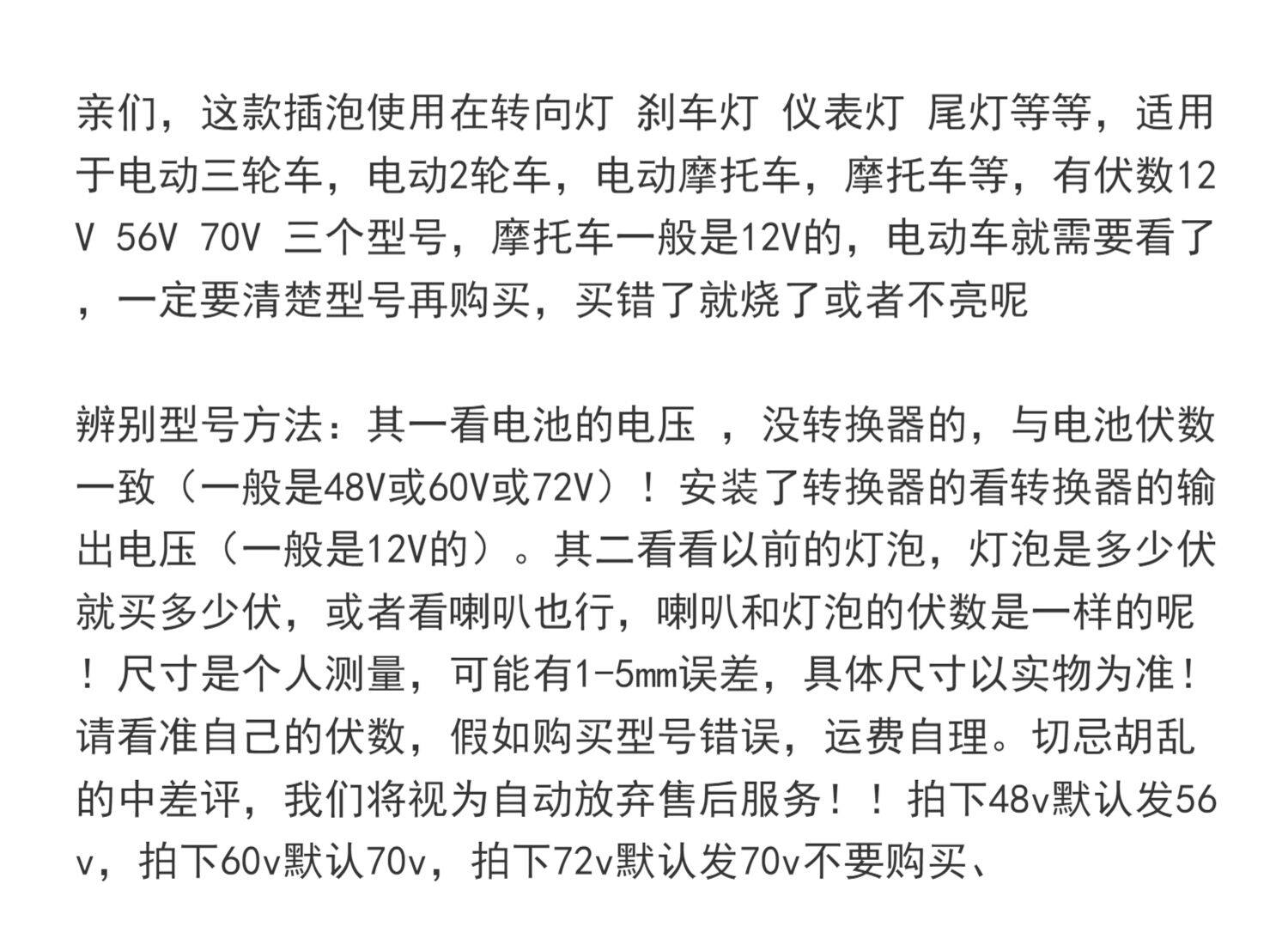 Электрический трехколесный велосипед, лампочка, 12v, 48v, 56v, 60v, 70v, 3W