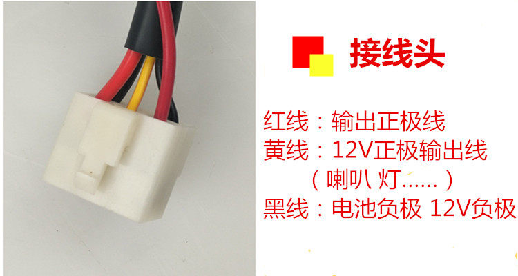 Упрощенное объяснение проводки:Подключите красную линию преобразователя к линии положительного электрода аккумулятора и подключите оборудование для подключения желтого провода (например: огни, динамики и аудио) преобразователя, а затем подключите отрицательные линии батареи и отрицательный Электродная линия оборудования на черную линию (поэтому черная линия называется публичной линией), пожалуйста, будьте осторожны, чтобы не забрать не ту линию. Если вы ошибаетесь, она будет сгорел немедленно. Второй шанс нет.