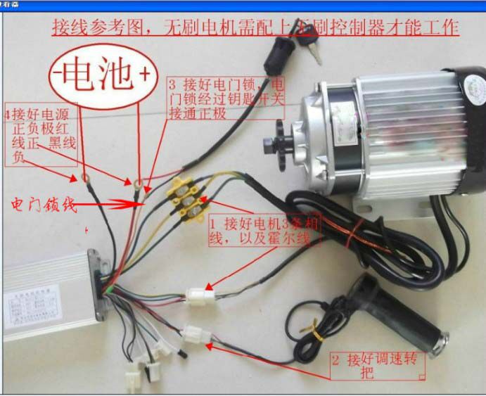 Взятие двигателя Yakat, соединяющего контроллер UNETTE в качестве примера, если двигатель может работать, по крайней мере, должны быть подключены следующие соединения. Во -первых, три толстой синей линии желтых линий на контроллере и синяя линия двигателя зеленая линия желтая линия Соответственно, линия зала контроллера и разъем линии моторного зала подключены.Затем подключите две красные и черные линии с толстым контроллером к источнику питания, красная линия положительная, а черная линия подключена к отрицательному полюсу.Затем подключите линию оранжевой дверной блокировки с положительным электродом источника питания, а затем подключите разъем руля регулировки скорости. (В руле настройки есть три провода подключен к черной линии).Поверните двигатель, чтобы запустить.