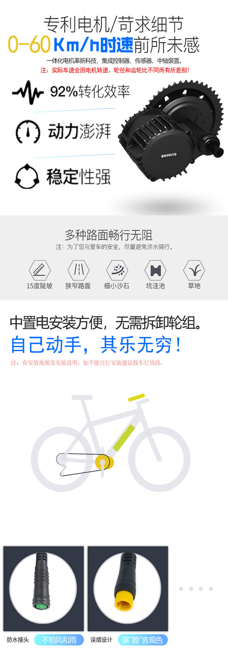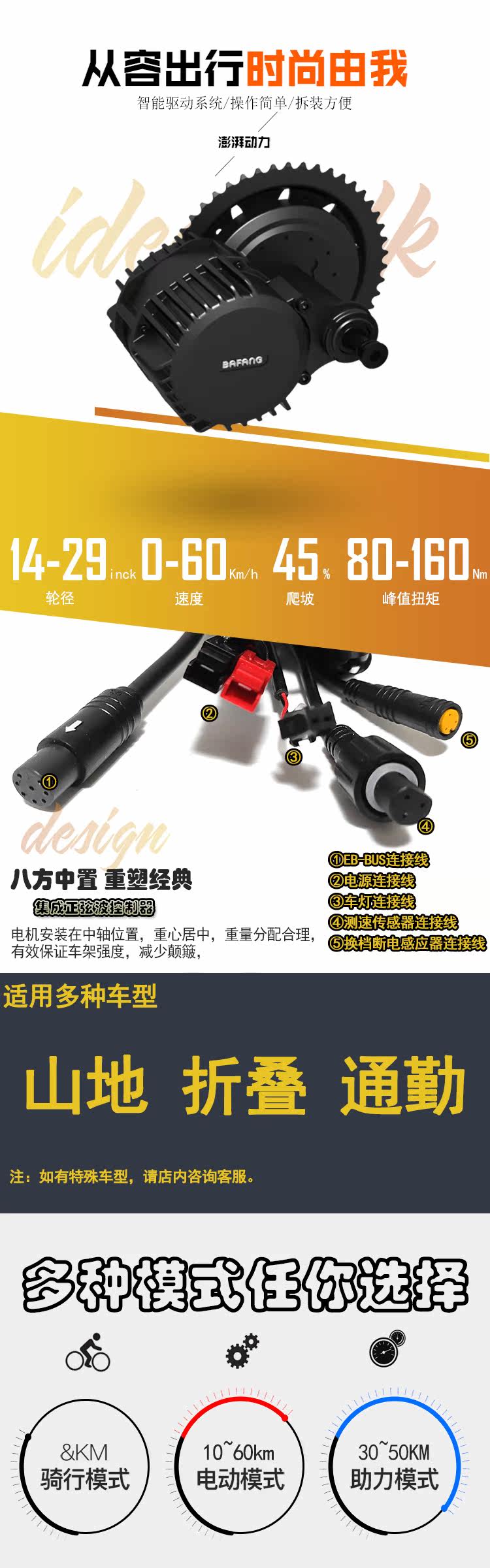 Средний электрический велосипед,7Если передача изменяется на сцене, электронная беспрепятственная регулирование скорости является сильной и мощной, стартовый крутящий момент большой, и при питании на низкой скорости вы почувствуете, что не сможете удерживать автомобиль вручную.Это настоящий двойной король скалола220Над Ньютону, скалолазание больше, чем15Тратить.Вы можете вытащить автомобильный автомобиль Jinbei Automobile (среднего размера).Скорость транспортного средства может достигать30километр/Час, механический7Передача передачи, и двигатель всегда работает в эффективной зоне (это проблема, которая не может быть решена электромобилями колесного хаба). Более того, это решение для переключения передач является наиболее экономичным и эффективным и удобно для технического обслуживания и технического обслуживания.(Тратить меньше денег, чтобы делать большие вещи— Подключается со зрелыми промышленными продуктами и велосипедными универсальными частями)