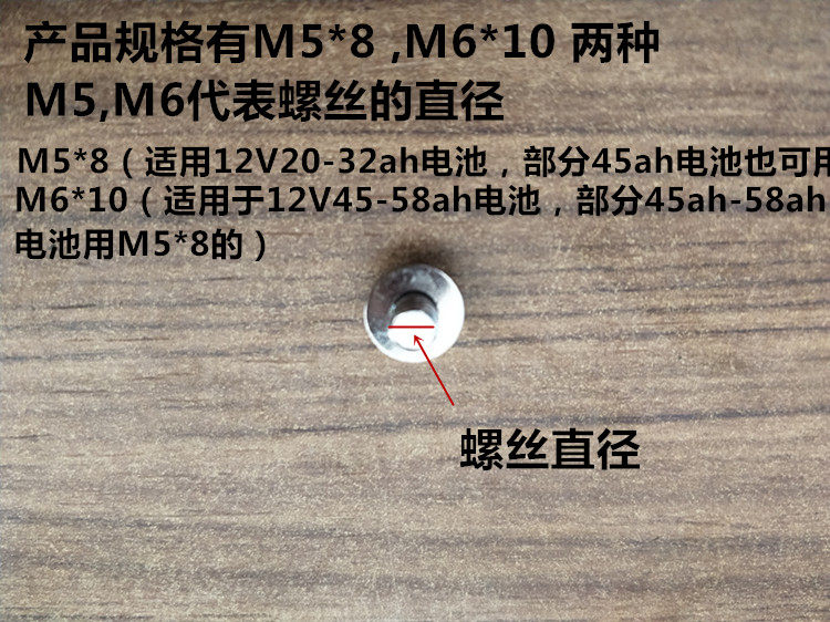 2:M6*10 (подходит для батарей 12V45-58AH, часть батареи 45AH-58AH для M5*8)